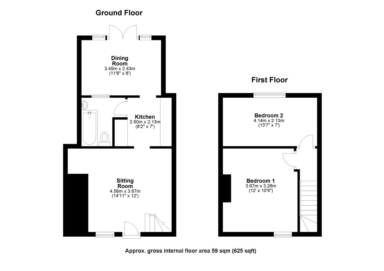 The accommodation comprises a uPVC double-glazed, stable-styled front door to the sitting room with a feature fireplace housing a wood burning stove and solid wood flooring, and stairs to first floor. The kitchen is fitted with attractive cabinetry, fitted work surfaces with an inset circular sink unit, four-ring gas hob, double oven and space for a fridge freezer and a washing machine. The kitchen opens to a further reception room with a mono-pitched roof incorporating a skylight plus French doors to the rear courtyard walled garden. The bathroom has been refitted and comprises a low-level WC, panelled bath with mains-fed shower over, a vanity wash hand basin, attractive wall and floor tiles plus a heated towel rail.