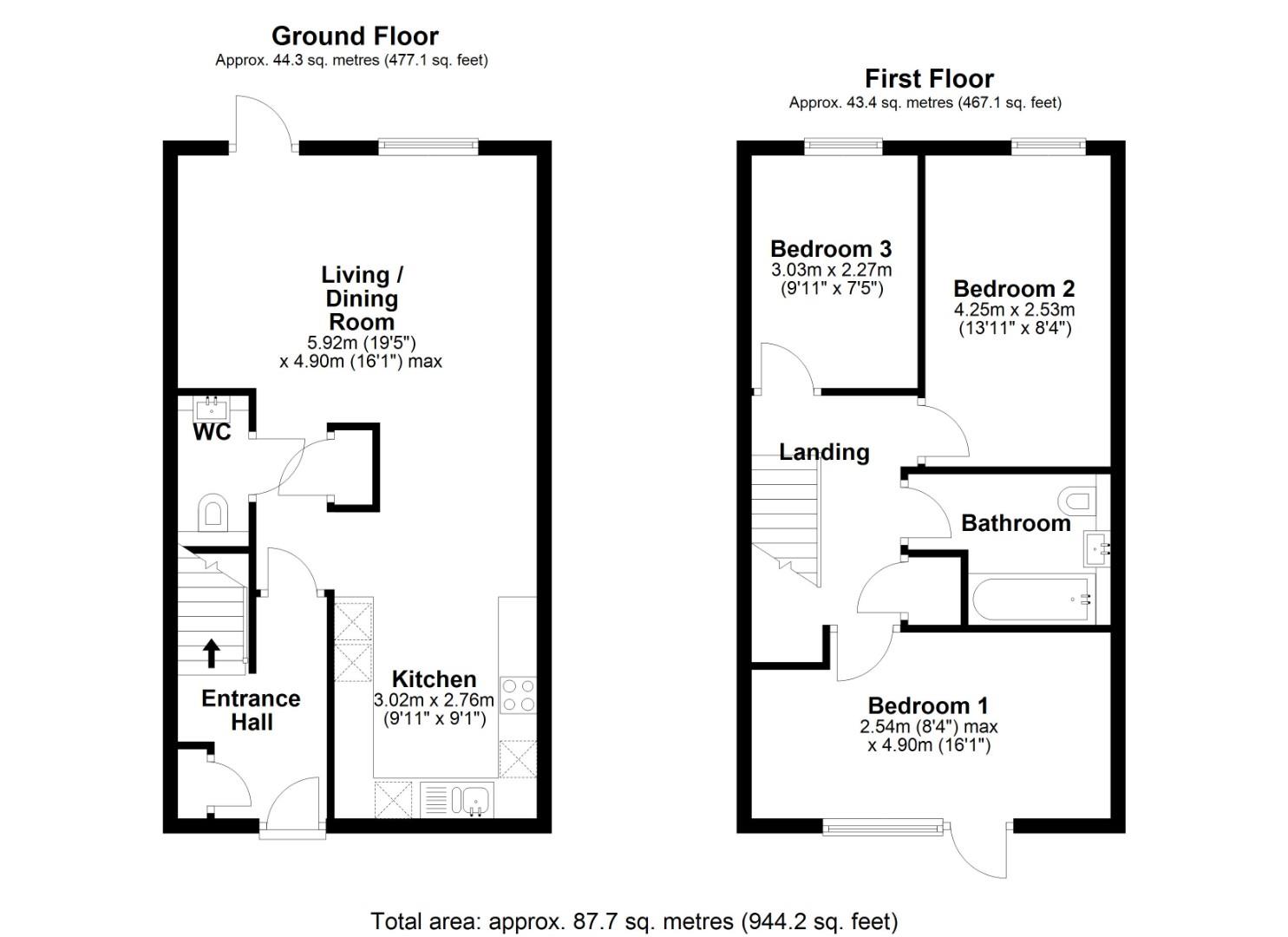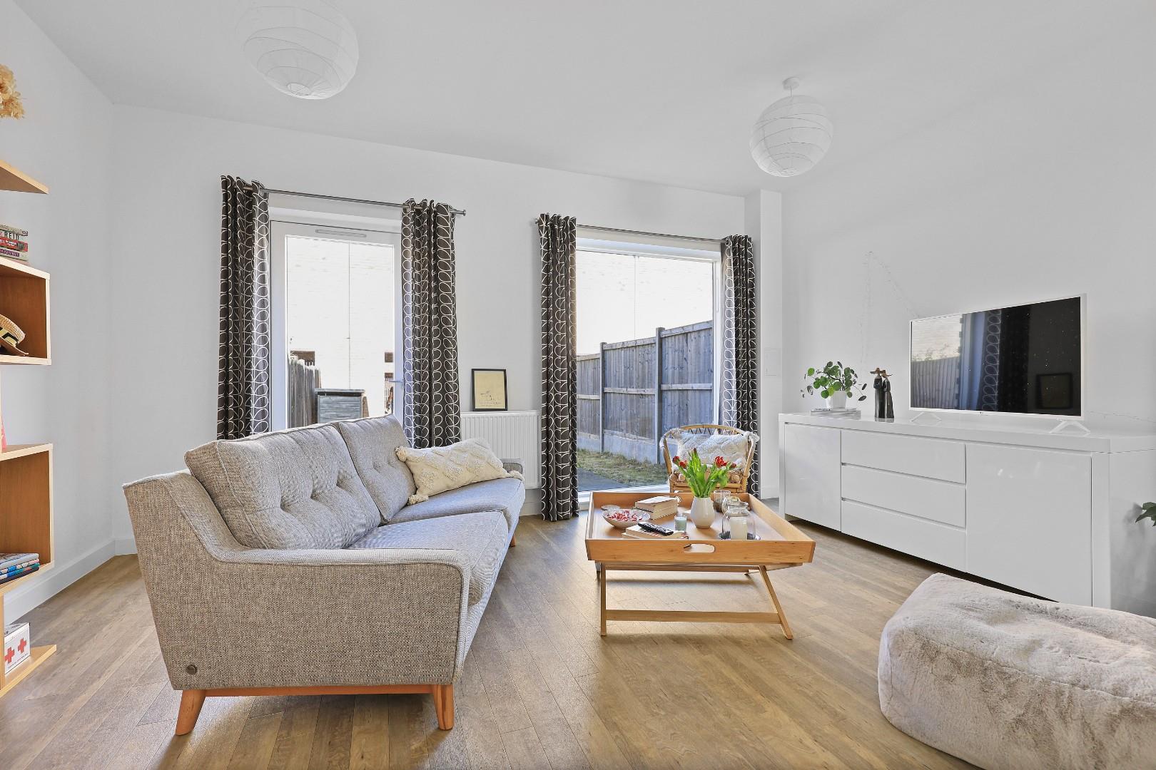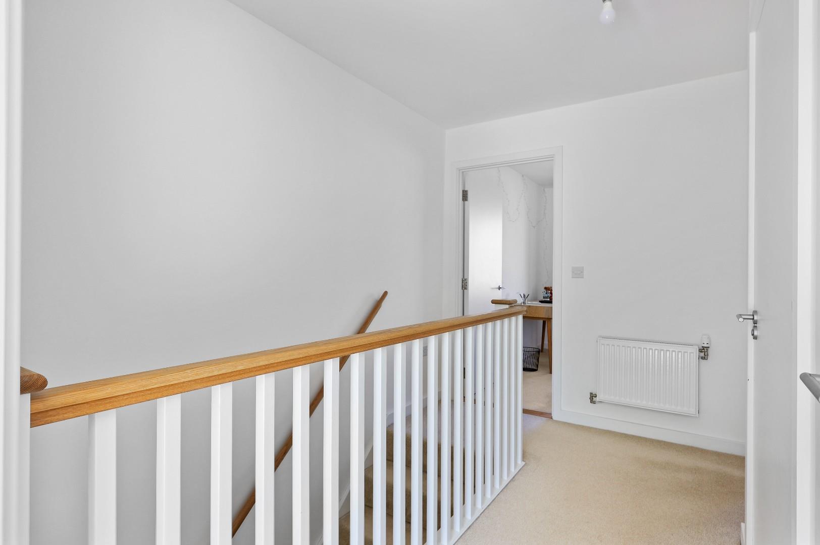 The first floor has three bedrooms, the largest with an impressive floor-to-ceiling window and family bathroom fitted with a three piece suite.