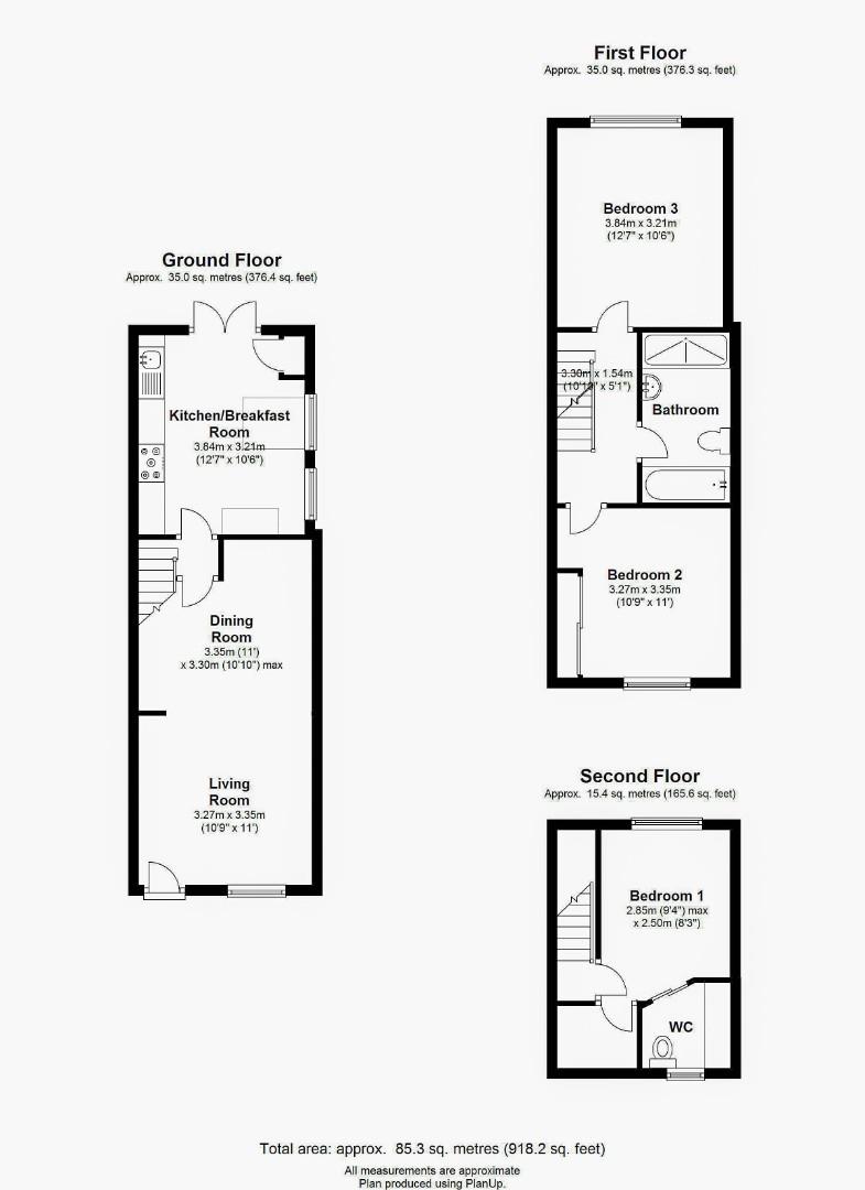 Upstairs, the first-floor landing leads to a modern bathroom suite with separate shower cubicle and two spacious double bedrooms. The second floor comprises a bedroom with spacious WC.
