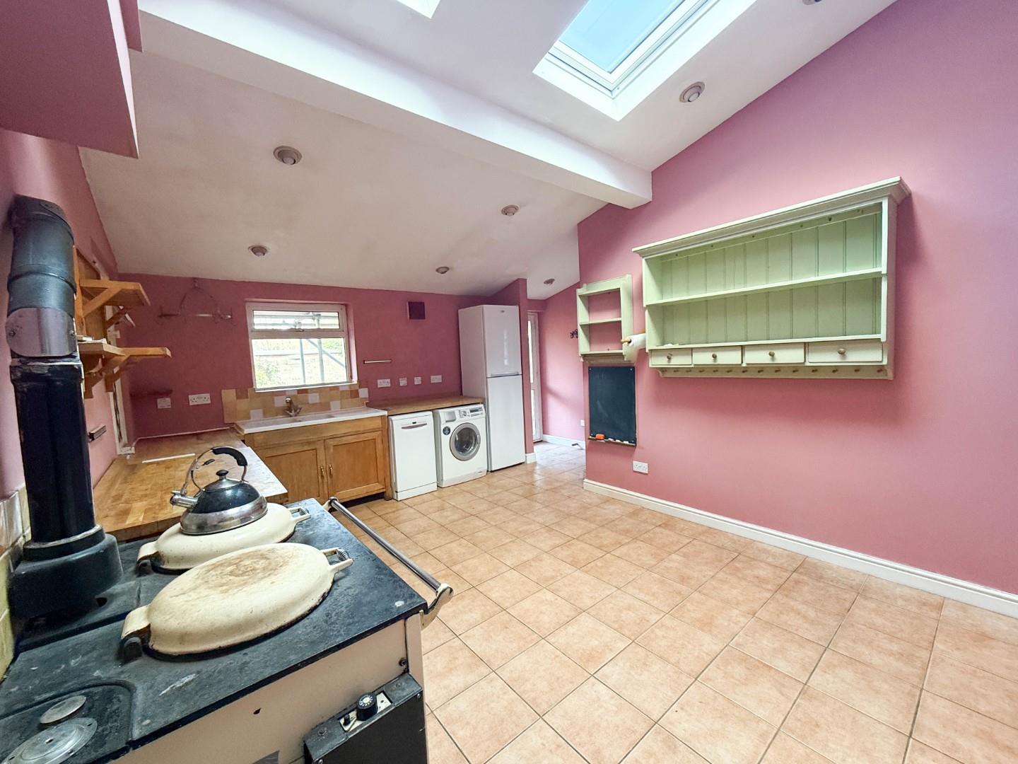 The accommodation comprises a welcoming reception hall with chequerboard flooring, extending to solid wood flooring in the inner hallway and stairs to first floor accommodation and ornate wall moulding. There are three reception rooms including sitting room, snug and bay-windowed dining room., all with original wood strip flooring. The kitchen/breakfast room boasts a mono-pitched roof incorporating two large Velux windows with bespoke solid wood cabinetry and work surfaces with ceramic one and a half sink unit with mixer tap and drainer, gas fired arga, space for fridge/freezer, washing machine and dishwasher.