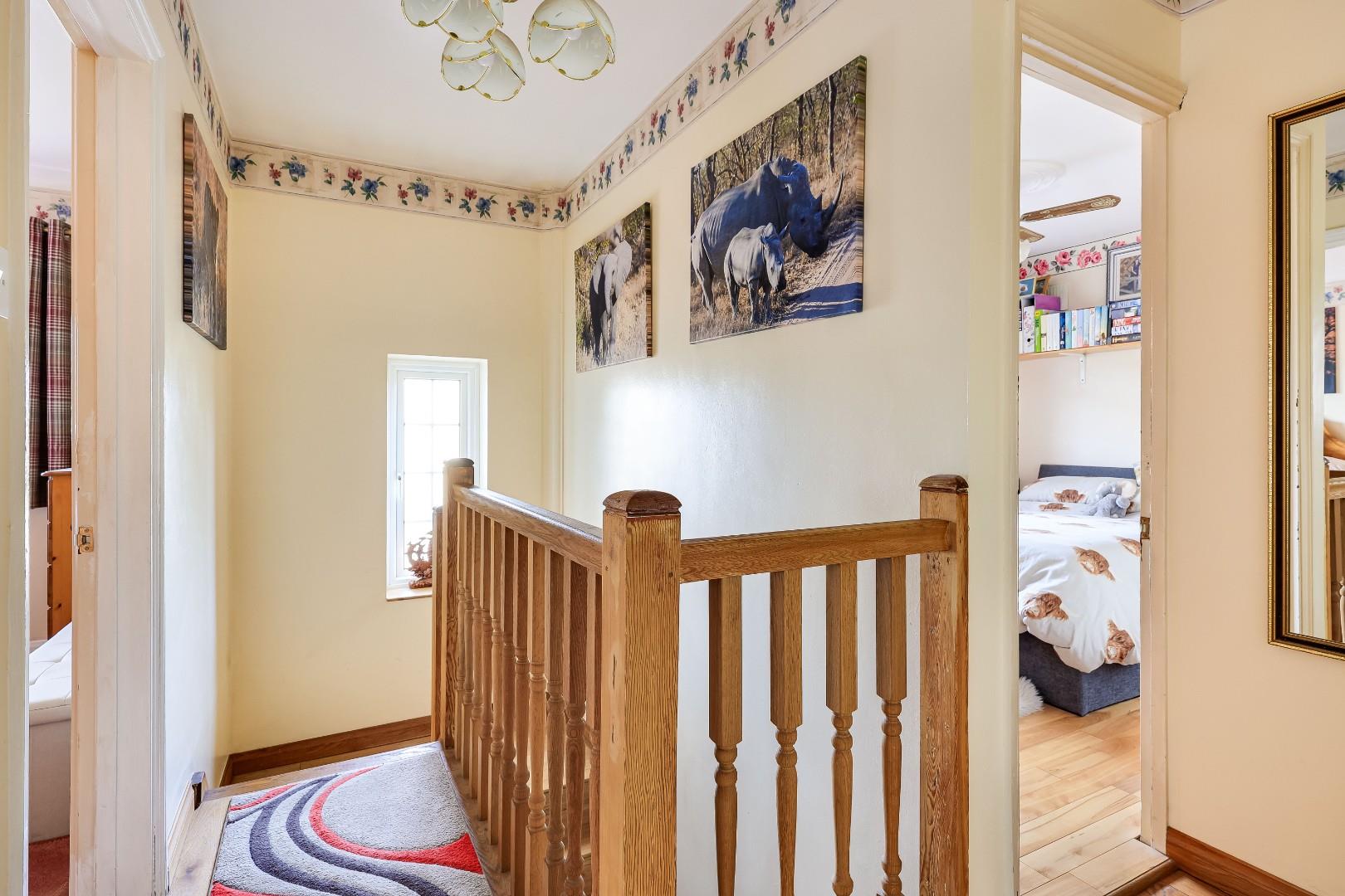 Upstairs, a landing area and inner hallway lead to six bedrooms and two bathrooms. The back three bedrooms could be easily reconfigured into one large principal bedroom suite.