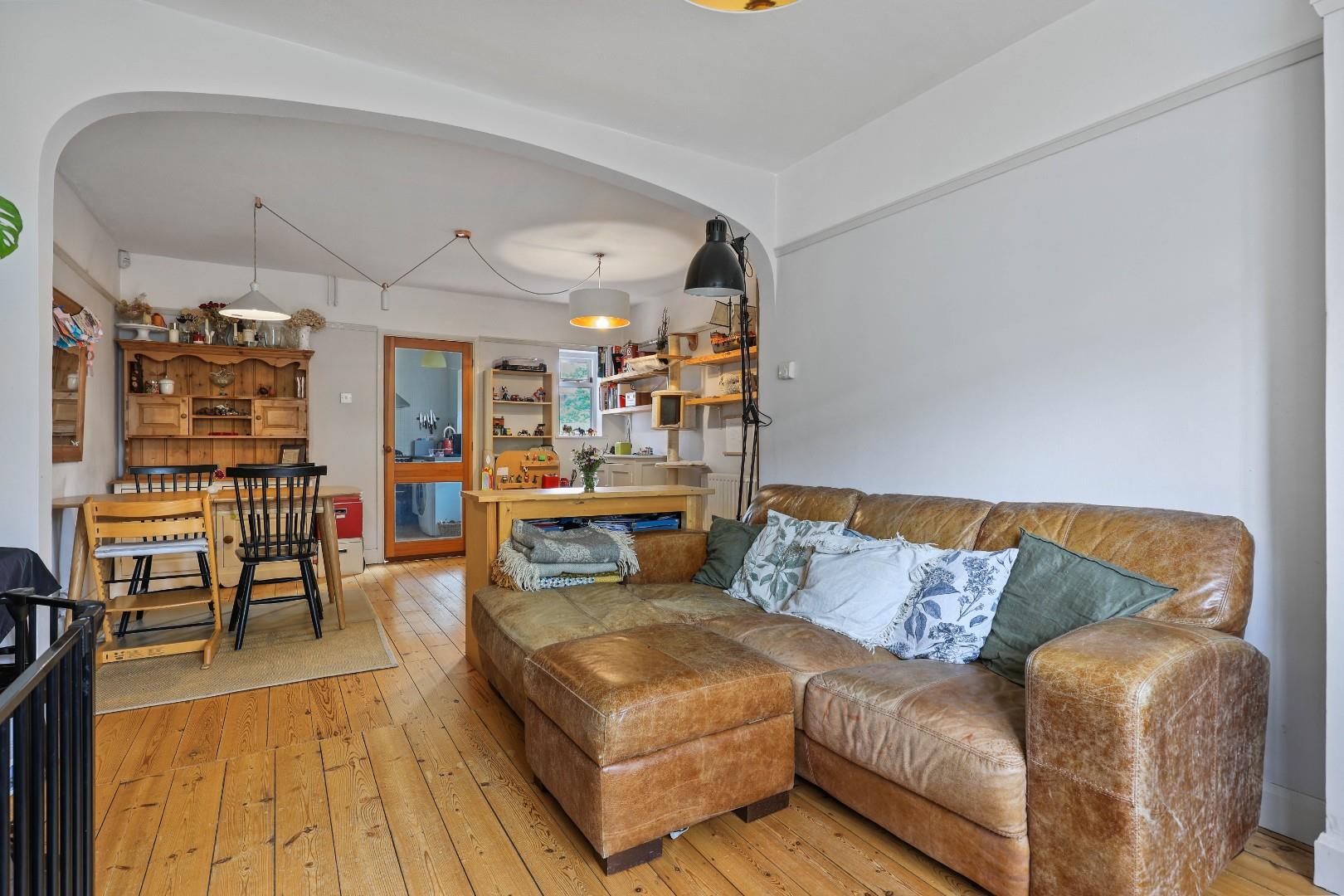 The accommodation comprises an entrance hall, a bright and airy open plan sitting/dining room with restored pine floorboards, a bay window and an attractive open fireplace. The dining area provides a useful understairs storage cupboard. A well-equipped and spacious kitchen with attractive floorboards, provides a range of low-level units and drawers (including two pull out larders beneath ceiling height cabinets), working surfaces and space for a range of freestanding appliances. There is access to the garden from the kitchen.