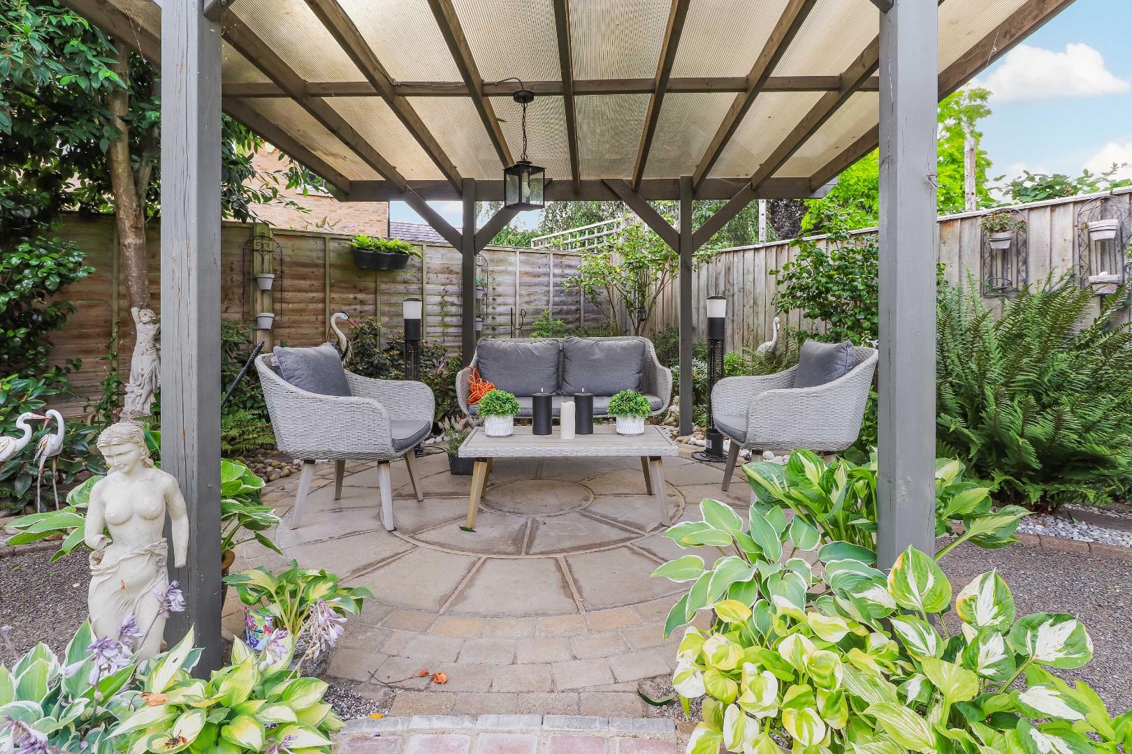 Externally – The property is accessed through a private driveway providing access to five properties. To the front of the property is a generous driveway providing parking for two vehicles and a linked double garage with two up and over doors and power and lighting. The front further benefits from a porcelain patio leading towards the front door with a crisp, white graveled frontage. The rear garden has been beautifully landscaped by the current owner and offers well stocked borders, a small lawn and several patio areas which include a circular patio beneath a covered pergola and further patio with brick pillars and raised beds surrounding.