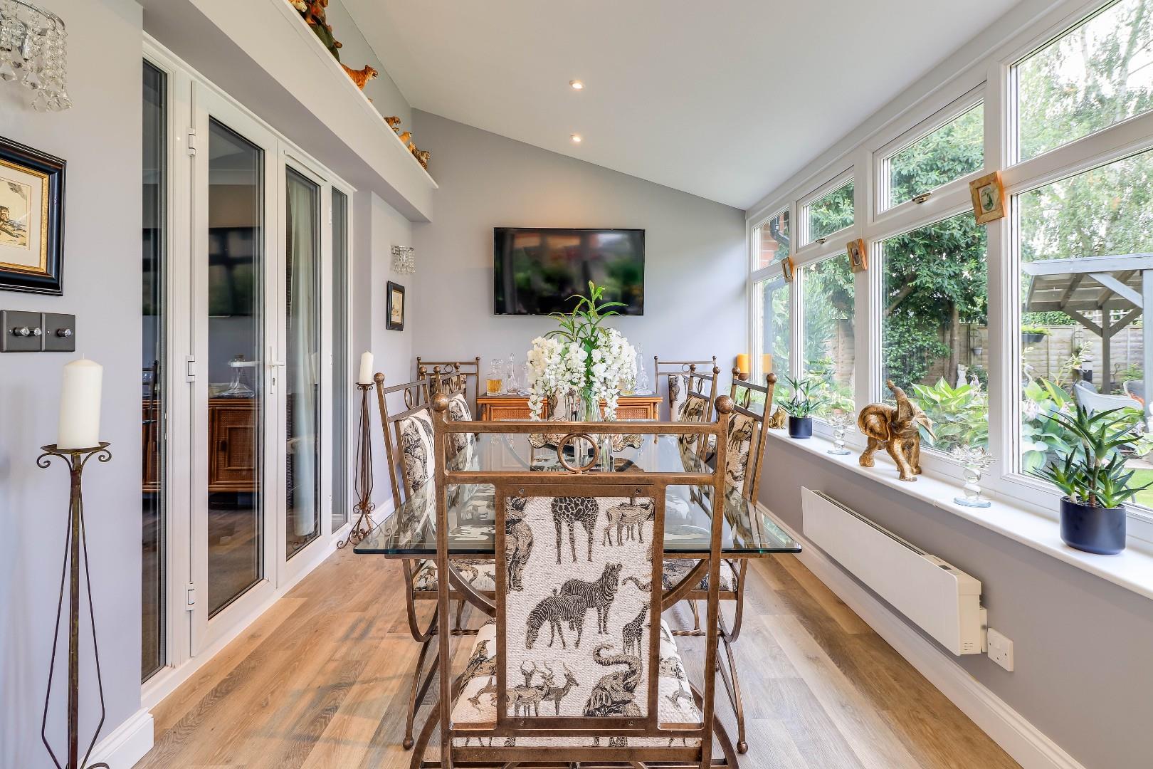 To the ground floor the property comprises, three reception rooms which includes a spacious lounge with bay window to the front, a study overlooking the front aspect and a conservatory which was constructed by Anglia Home Improvements and later had a replacement composite roof in 2021. The property has a splendid kitchen/dining area ideal for entertaining from home and benefits from integrated appliances including a dishwasher, two ovens, an under-counter fridge and an under-counter freezer. Completing the ground floor is a separate utility room off the kitchen and a WC located off the spacious entrance hall.