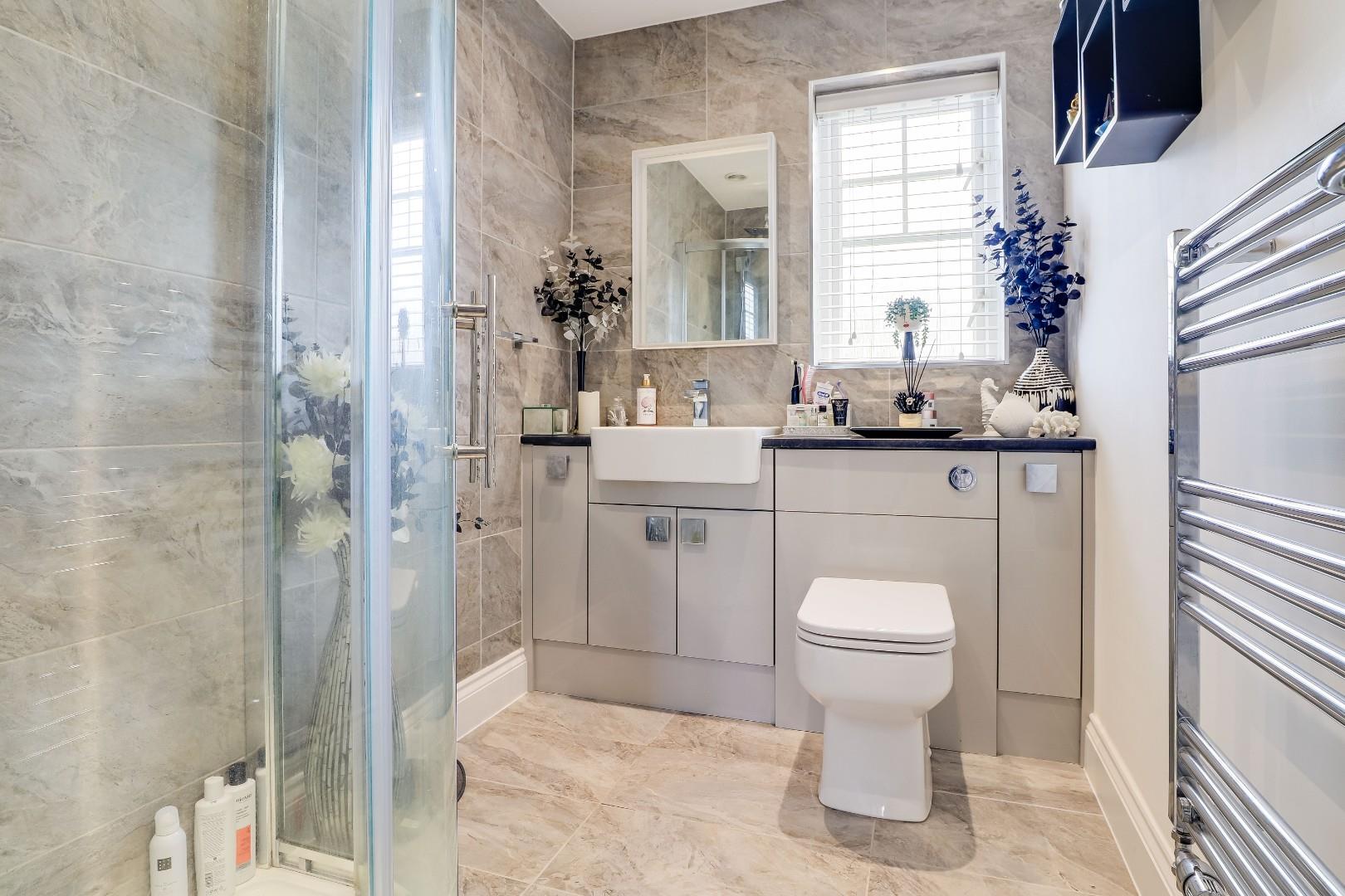 To the first floor of the property, you will find four spacious bedrooms which include fitted wardrobes to bedrooms three and four. The enviable master bedroom suite benefits from a walk in dressing area and en-suite shower room which is mainly tiled, has a single enclosed shower, low level WC, a wall mounted sink with vanity unit below and a heated towel rail. Serving the remaining bedrooms is a recently replaced bathroom suite which is fully tiled and benefits from a single enclosed shower, a panelled bath, a low-level WC and a wall mounted sink with a vanity unit below.