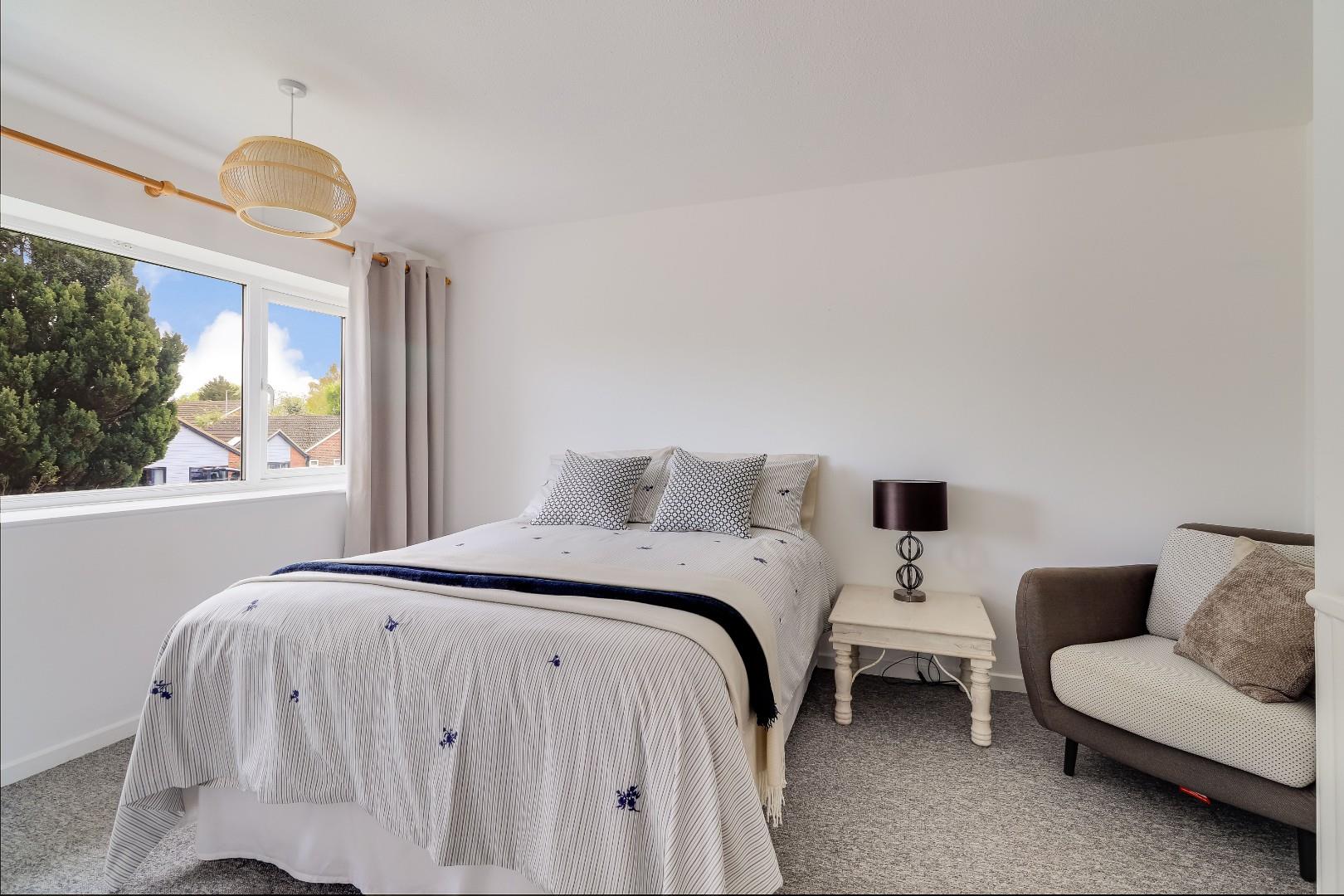 Outside, established and colourful gardens surround the property to three sides. The front garden offers space for additional parking, the side offers useful storage space, and the rear garden has a patio area and lawn. There is rear pedestrian access to a detached garage and a parking area.