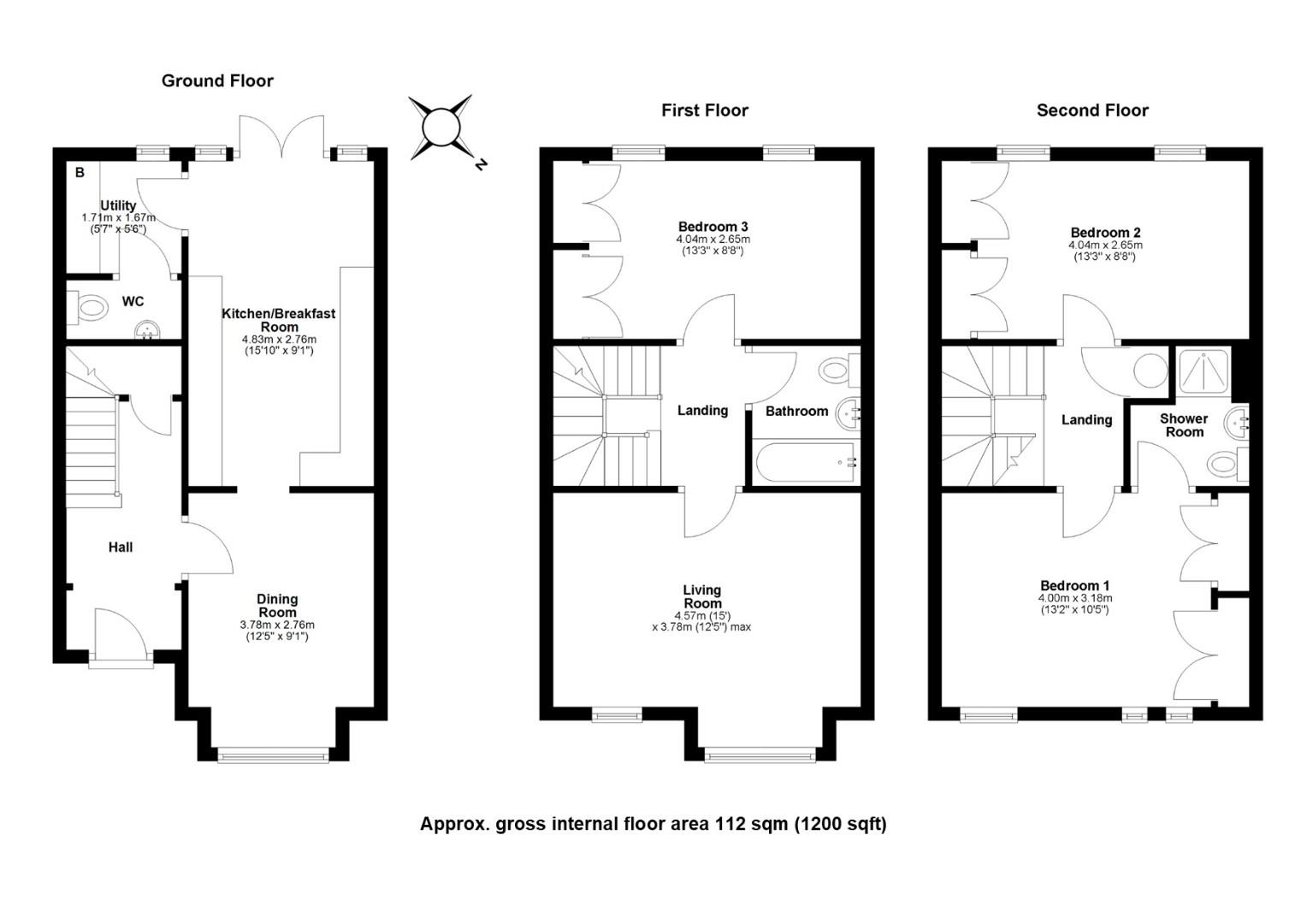 Constructed in 2001, this delightful home measures 1200 Sqft/112 Sqm and provides generous levels of accommodation over three floors. To the ground floor the property comprises of a spacious entrance hall with stairs leading to the first floor and storage beneath. Completing the ground floor is a formal dining room with a box bay window, a kitchen breakfast room with doors opening into the rear garden, a utility room which also houses the boiler and a separate WC adjoining. To the first floor you will find a spacious living room which can also be used as a fourth bedroom, bedroom three with built-in wardrobes and a separate family bathroom with a panelled bath with shower over, a low-level WC and a pedestal sink unit. To the second floor are two further double bedrooms each with fitted wardrobes and includes a master bedroom suite with an en-suite shower room.