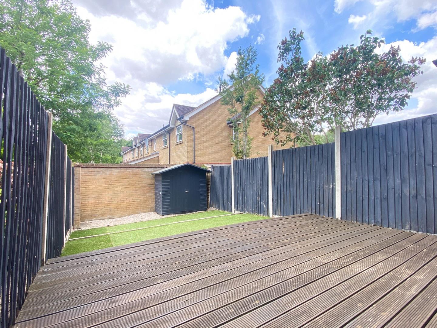 Externally – To the front are two allocated parking spaces. Several feet from the front door is a bus stop providing regular public transport links to the Historic Centre of Cambridge. The rear garden is fully enclosed and split over three levels with a decking area off the kitchen/breakfast room and a mixture of astro turf and gravel to the further two levels below. To the rear of the garden is a timber built shed and gated access which leads to a nearby park and one of many communal green spaces located within Great Cambourne.