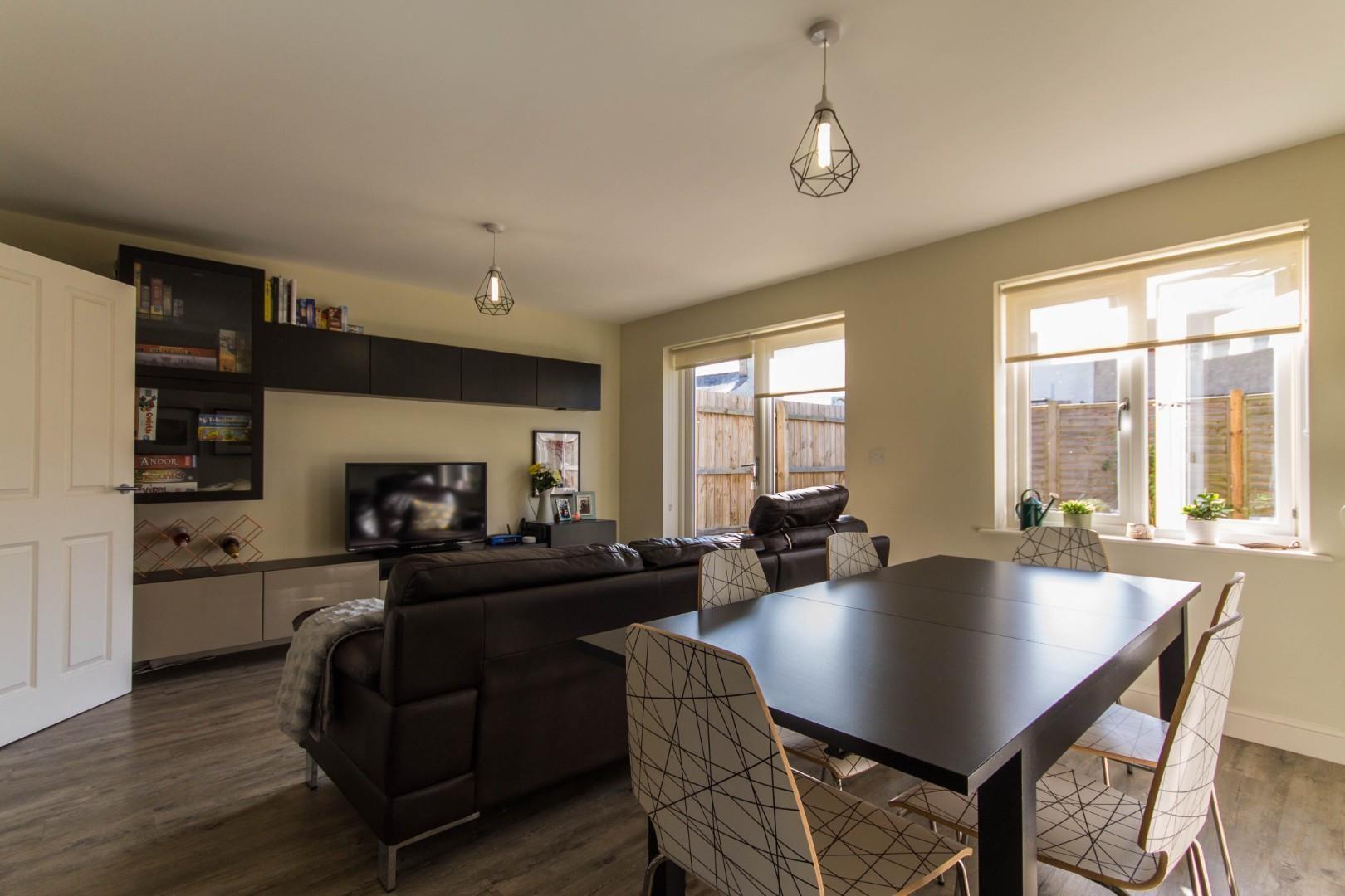 To the ground floor the property comprises a hallway with stairs leading up to the first floor, storage beneath the stairs and a WC adjacent. The spacious open plan sitting/dining room benefits from large French doors which open into the rear garden and hard flooring throughout.
