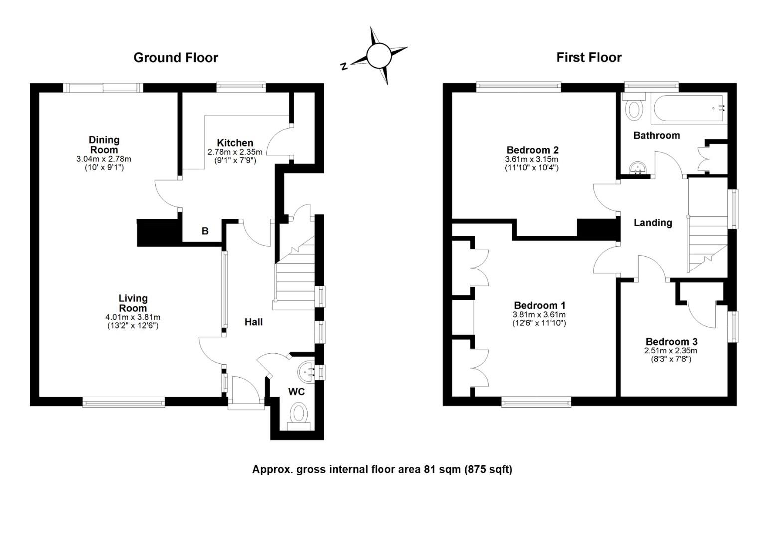 The accommodation comprises a welcoming reception hall with stairs to first floor accommodation, cloakroom and a WC just off. There is a dual aspect sitting/dining room with a wall-mounted gas fire and French doors to the garden. The kitchen is fitted with base-level and wall-mounted storage cupboards, worksurface with a single sink and drainer, a built-in pantry cupboard and a freestanding gas-fired central heating boiler. There is also space for a gas cooker, fridge-freezer and a washing machine.