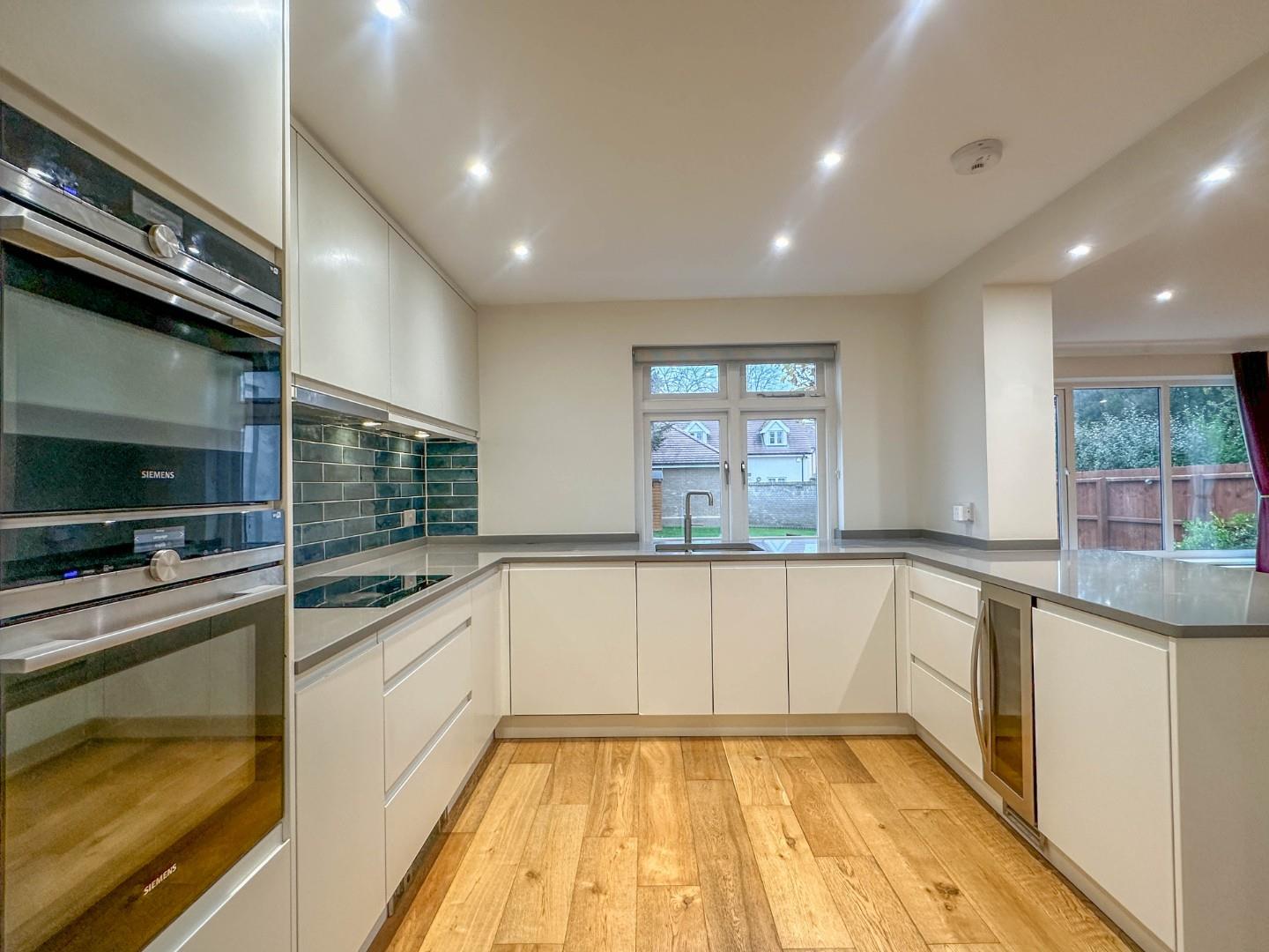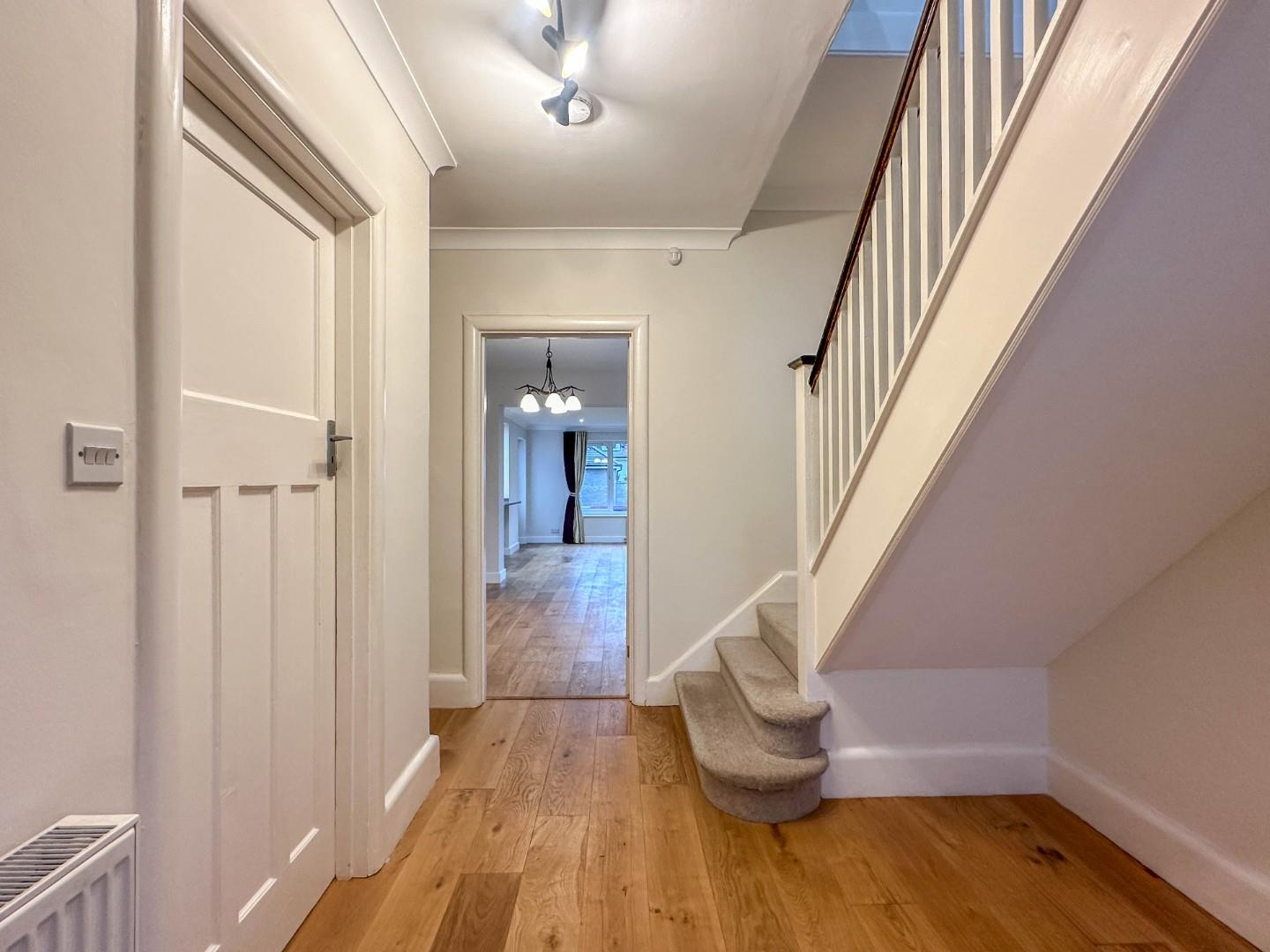 The property comprises of an entrance hall with doors leading to front sitting room / bedroom 4 with large bay window overlooking the front, wet room and dining room. The dining room has a feature fireplace and opens on to the spacious family room. There is a kitchen / breakfast room with a modern range of fitted units, a built-in microwave, two ovens, electric hob, Quooker tap, wine cooler and dishwasher, there is also a door leading to the utility room which has a washing machine and dryer. Upstairs, the master bedroom benefits from an ensuite consisting of a large walk in shower, WC and wash basin. There are two further bedrooms and a family bathroom. All three bedrooms upstairs have built-in wardrobes. To the front of the property there is a small front garden enclosed with shrubs and parking for 3 cars. The rear garden is private and fully enclosed. It is part paved and part laid to lawn with mature trees for privacy. A gardener will attend a few times a year to trim hedges and trees, the general upkeep of the garden is the tenant's responsibility.