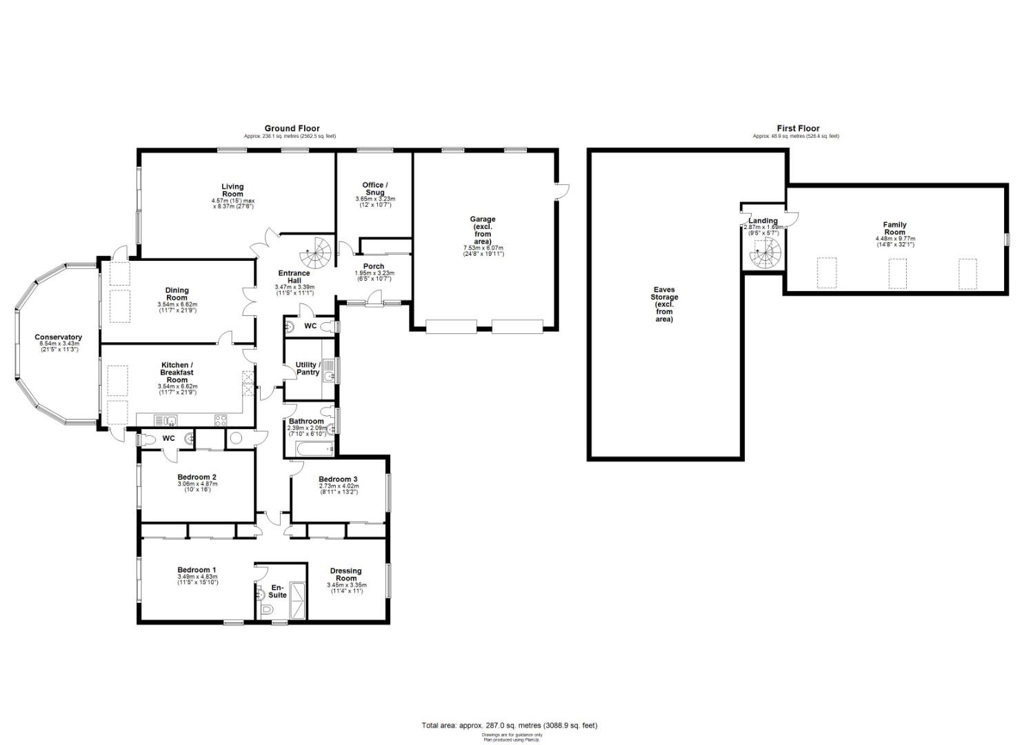 Constructed in 1999, this large, detached home measures approximately 3088 Sqft / 287 Sqm and provides generous living accommodation over two floors. Upon entering the property, you are greeted by a large entrance hall with built in cupboard ideal for coats and shoes. Off the entrance hall is an integral double garage and an inner hallway with a staircase leading up to the 32ft family/hobby room spanning across the first floor. Additionally, you will find four reception rooms which includes a 27ft living room with double aspect windows and patio door, a formal dining room with Velux windows, a conservatory which opens onto the delightful rear garden and a study which could also be used as a fourth bedroom if required. The kitchen/breakfast room for the property benefits from shaker style units at both base and eye level, large levels of worktop space and integrated appliances which includes a double fan assisted oven at eye level, induction hob and an integrated dishwasher.