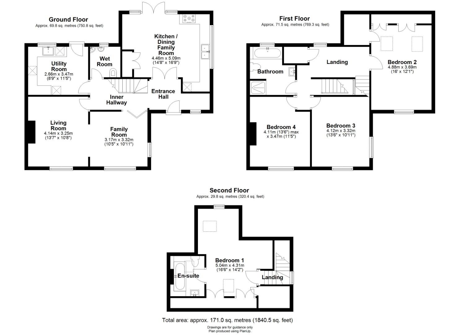 A cosy sitting room with a wood burning stove and attractive flooring connects to the family room. A large and useful utility room with access to a outside covered storage area and wet room complete this level.