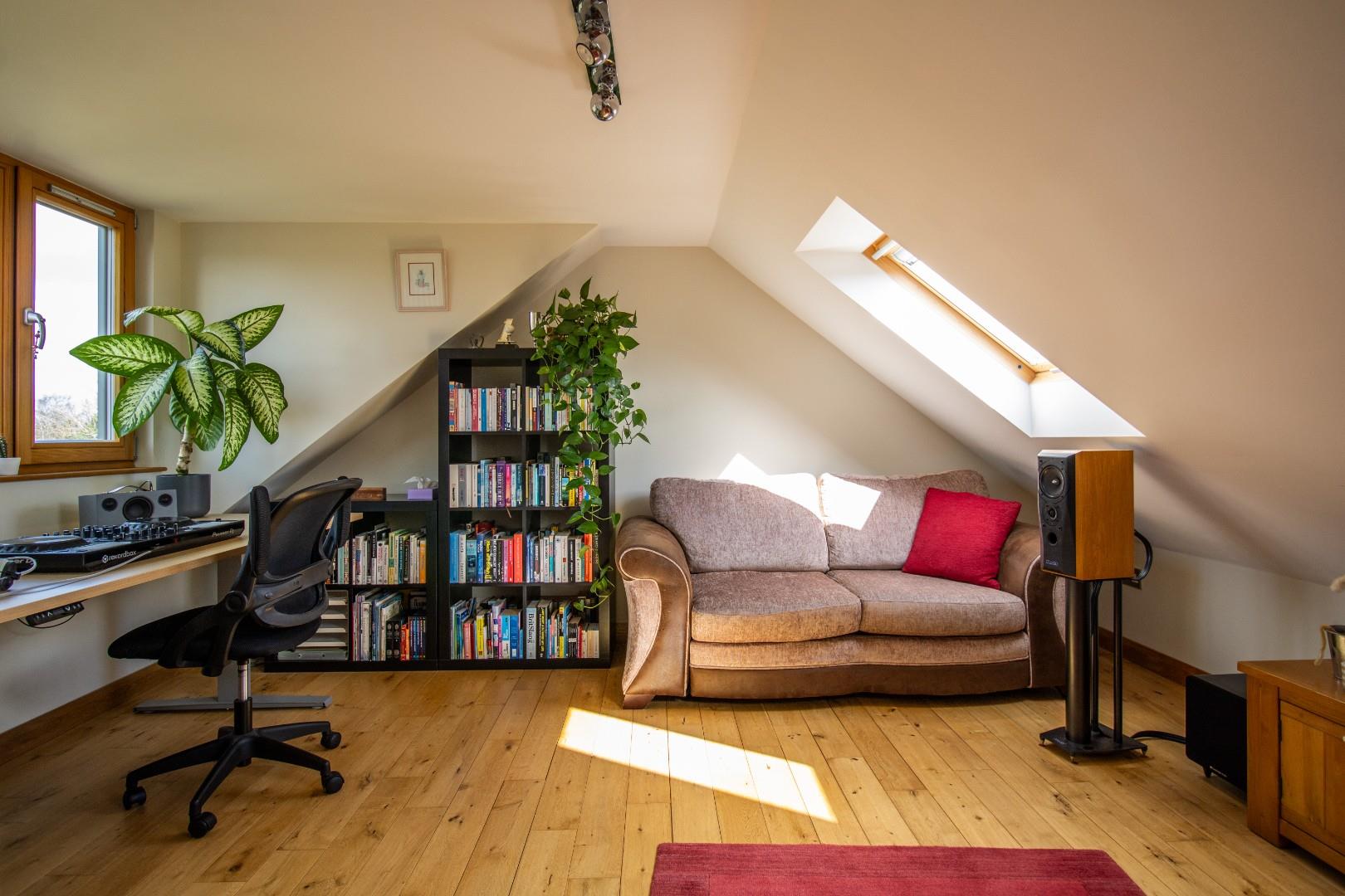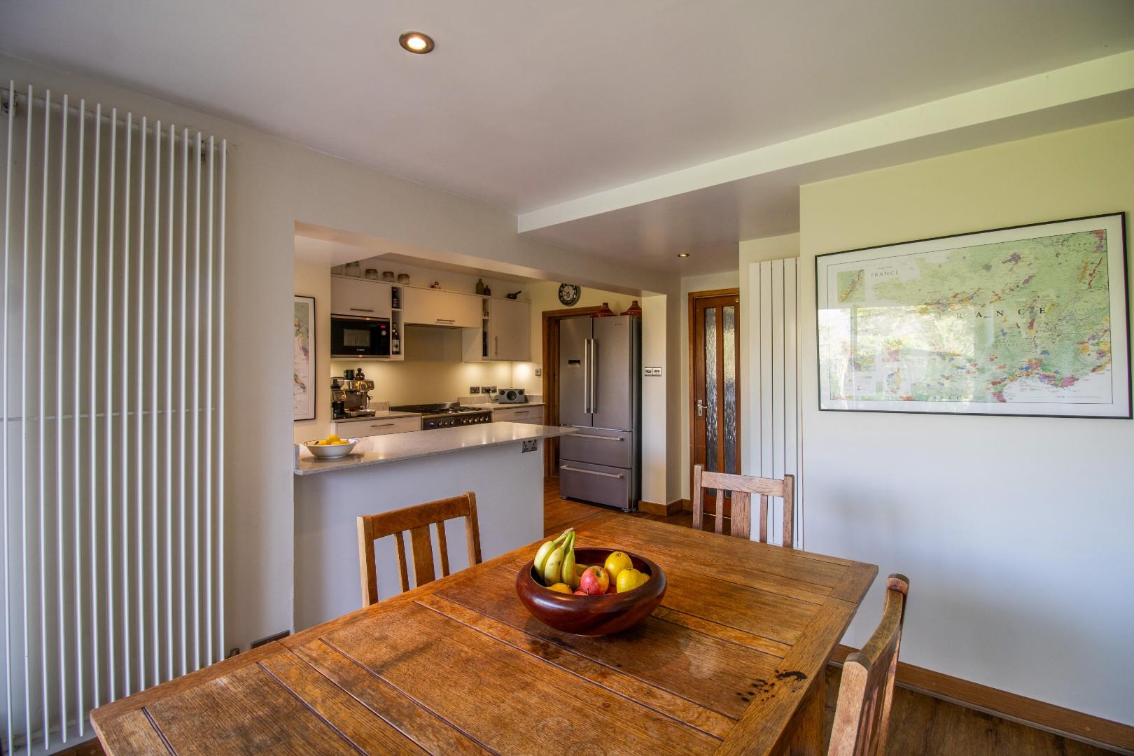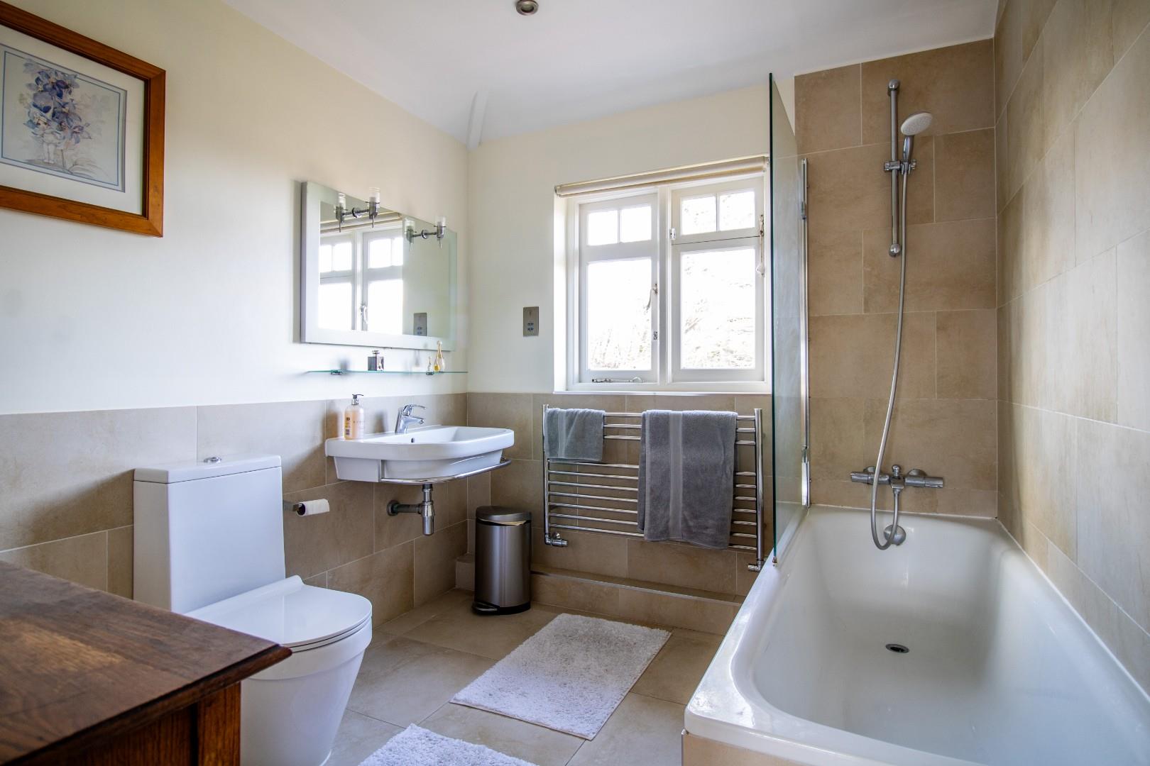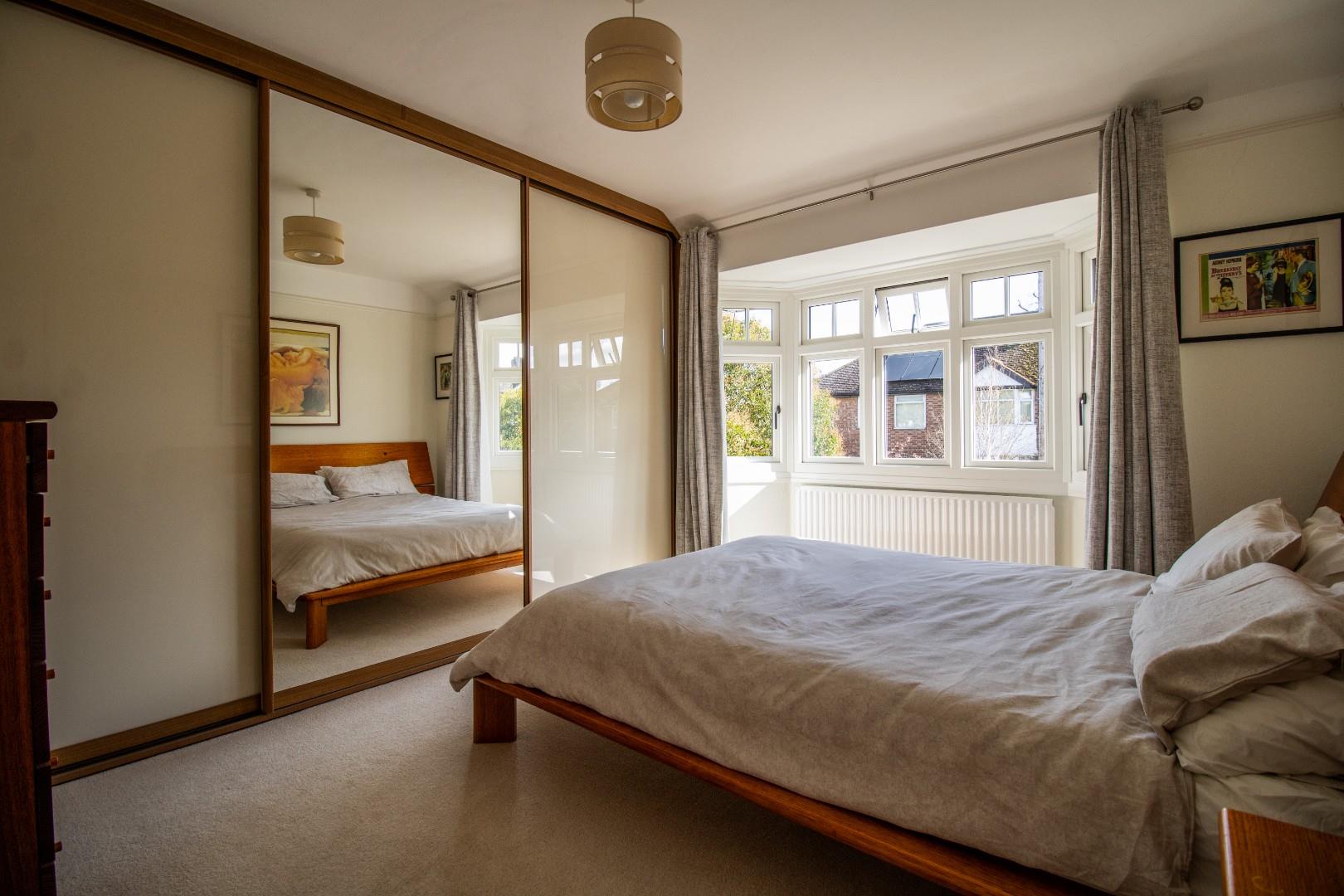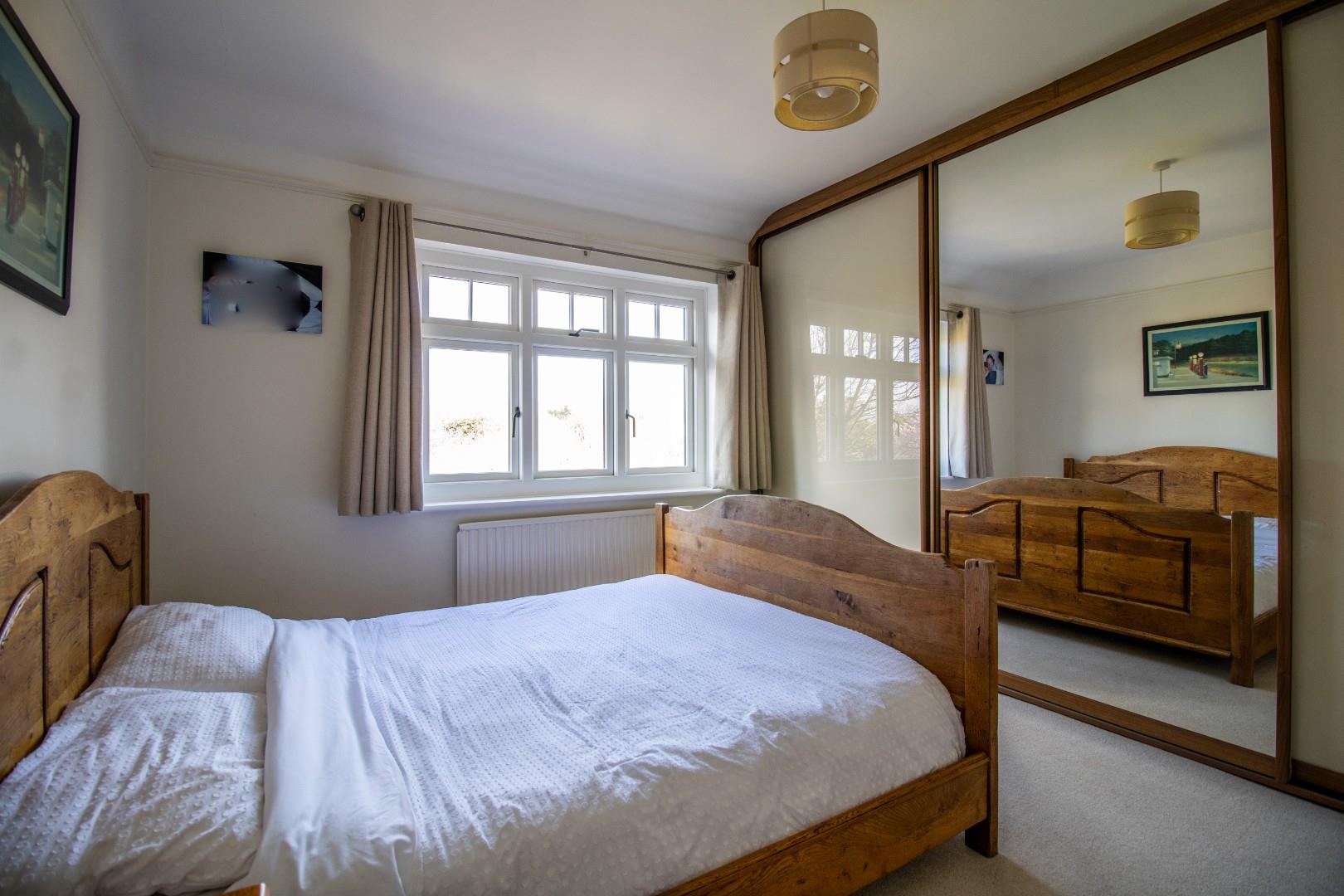 Upstairs, the accommodation is arranged over two floors, the first housing four double bedrooms, two including large built-in sliding wardrobes. There is also a family bathroom. Bedroom 3 is currently set out as a home gym and bedroom 4 has a sliding door opening onto a balcony providing idyllic views over the rear garden. On the second floor are the two remaining double bedrooms and a shower room off from the landing, fitted with a modern white suite.