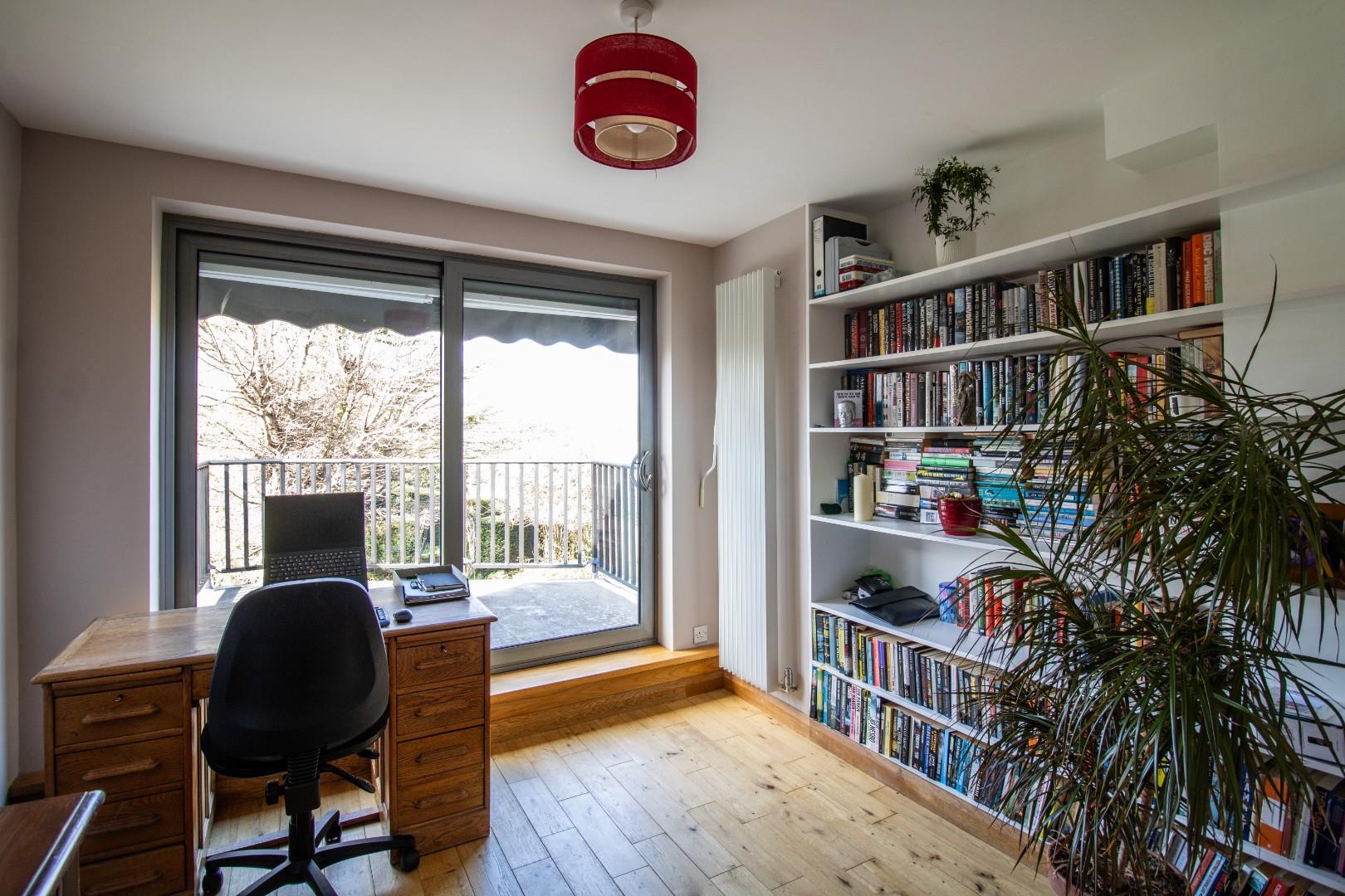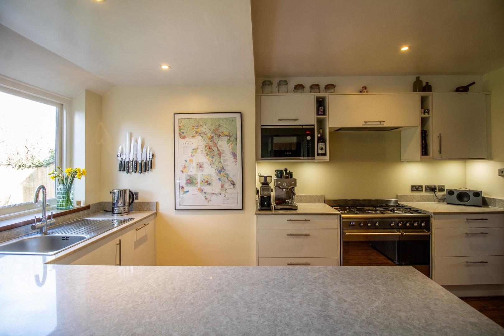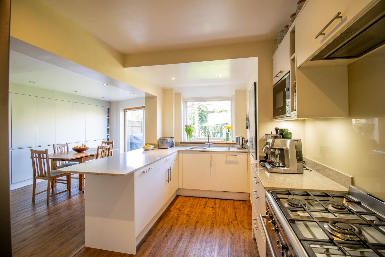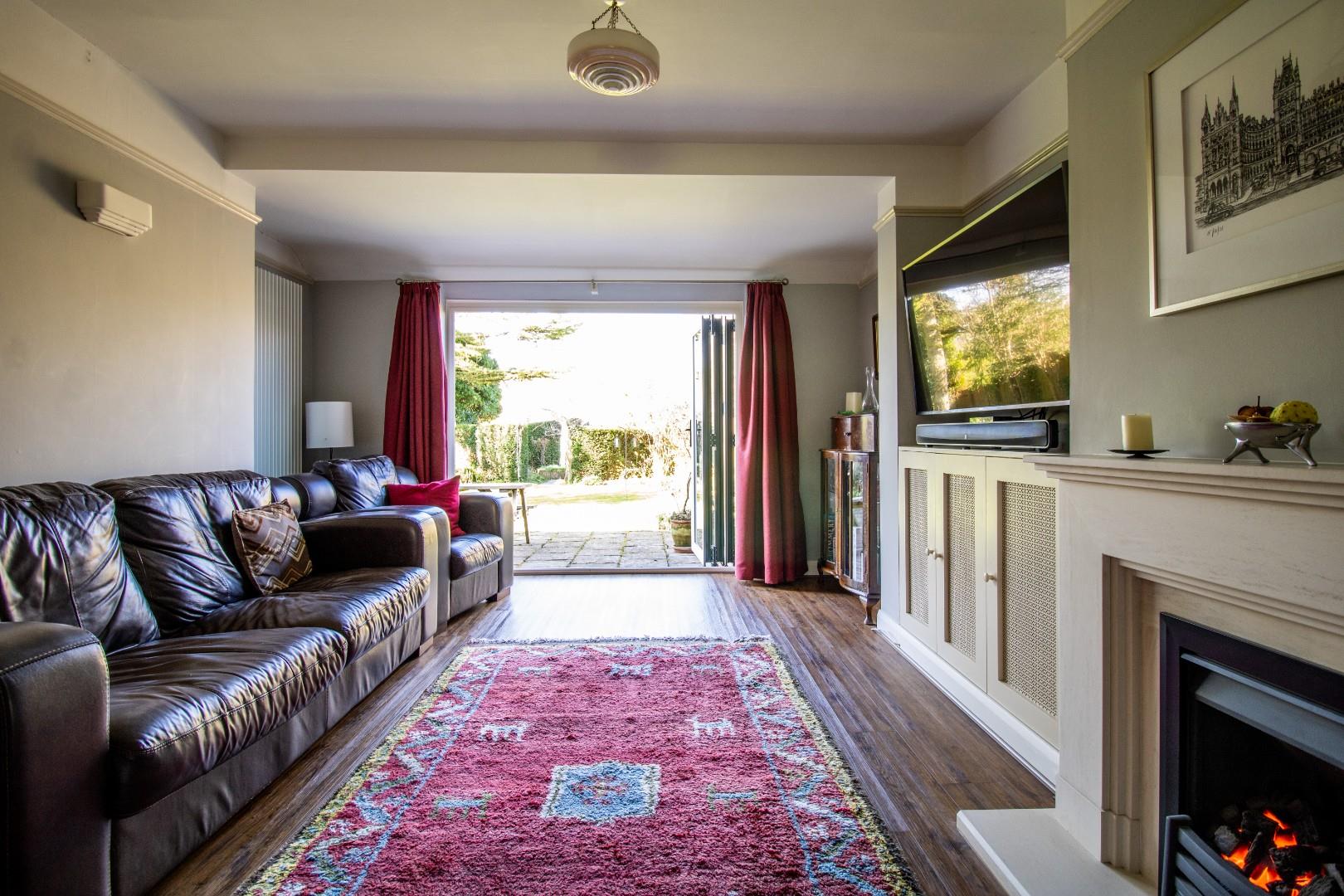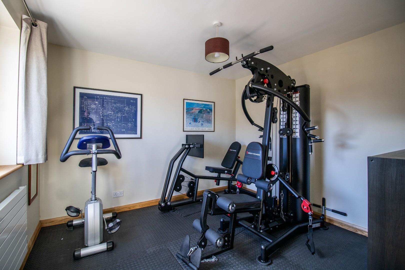 Upstairs, the accommodation is arranged over two floors, the first housing four double bedrooms, two including large built-in sliding wardrobes. There is also a family bathroom. Bedroom 3 is currently set out as a home gym and bedroom 4 has a sliding door opening onto a balcony providing idyllic views over the rear garden. On the second floor are the two remaining double bedrooms and a shower room off from the landing, fitted with a modern white suite.