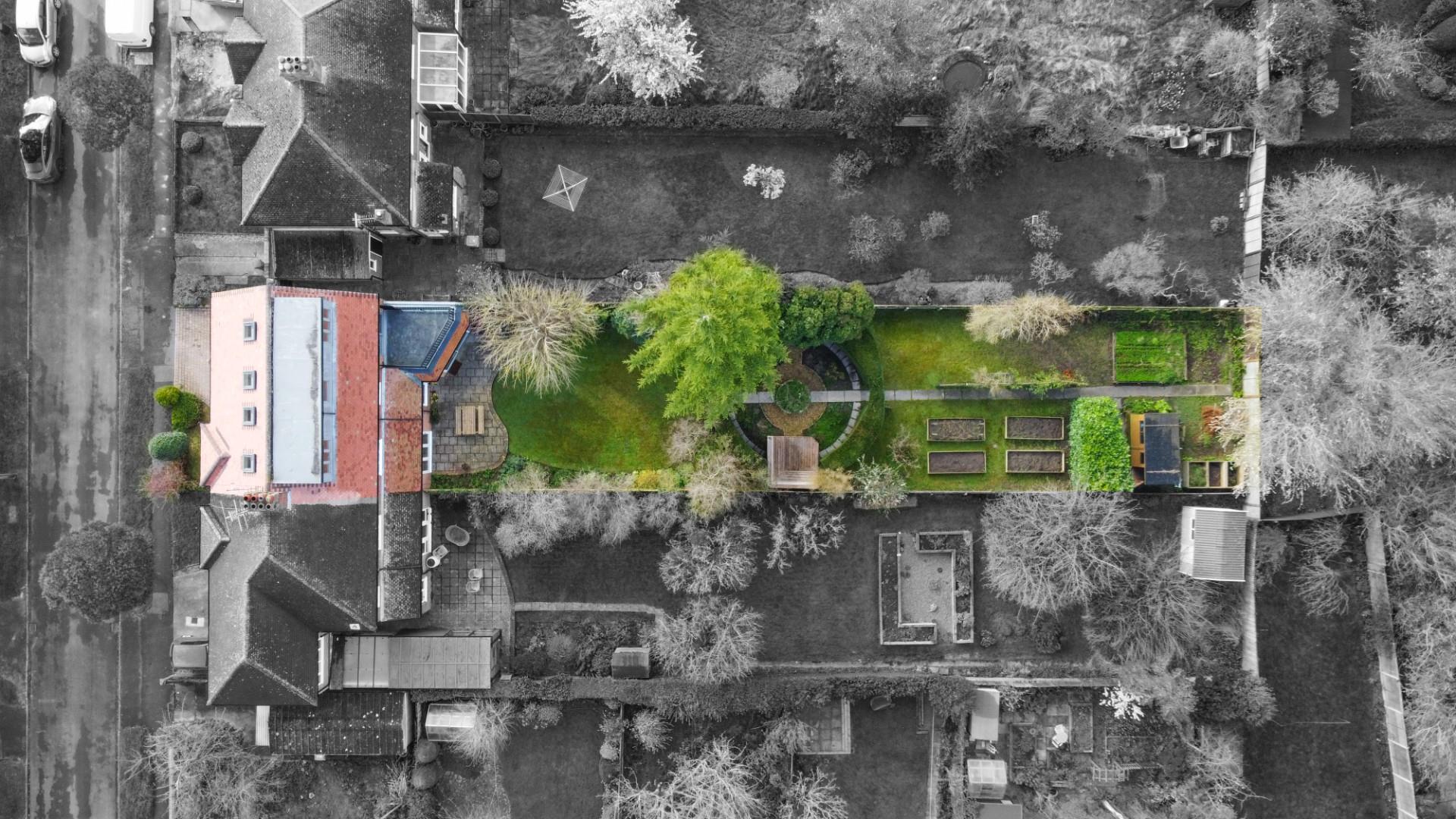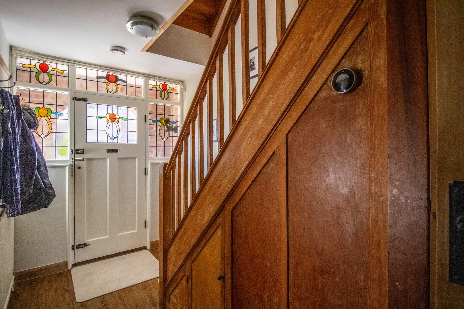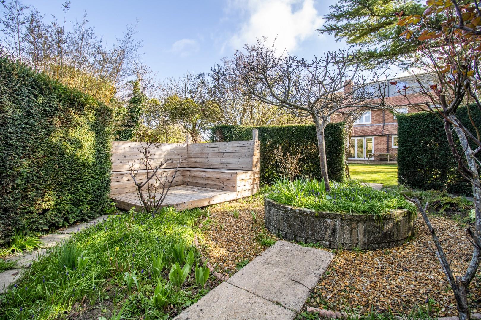 To the front of the property there is a block paved driveway providing off road parking and plenty of additional on-street parking available. The sizeable west-facing rear garden extends to around 50m (164ft) and is cleverly arranged into several sections, initially laid to lawn and leading onto a circular feature garden with a “suntrap” seating area. This in turn leads onto a vegetable garden area and adjoining lawn with a useful storage shed.