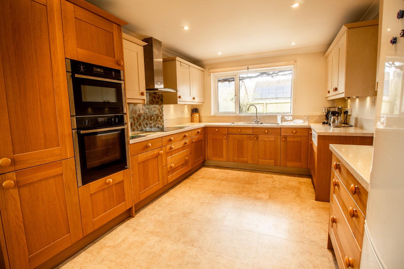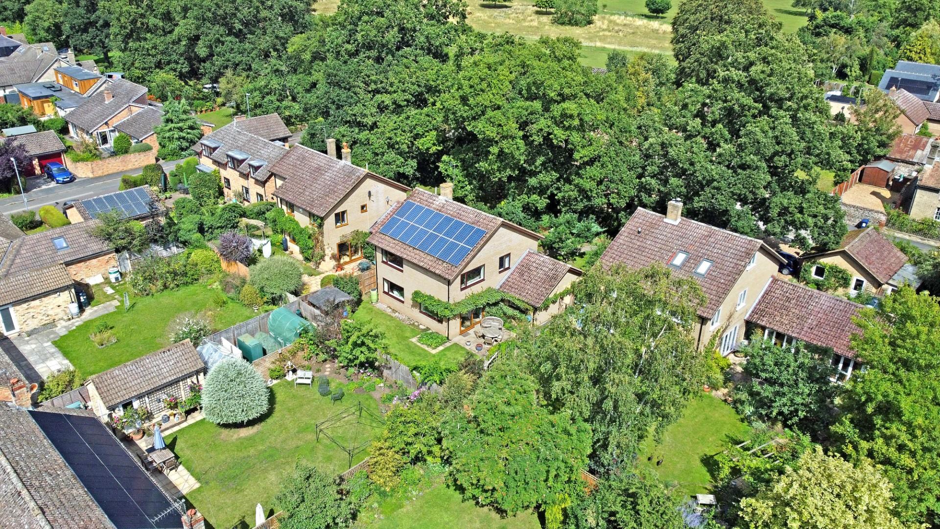The property enjoys a fine, non-estate position, set back from the road and screened by two mature oak trees and just a short walk from the village primary school and amenities. The property boasts a spacious and well-planned accommodation with ample parking, double garage and secluded gardens plus further boasts solar panels and air source heating.