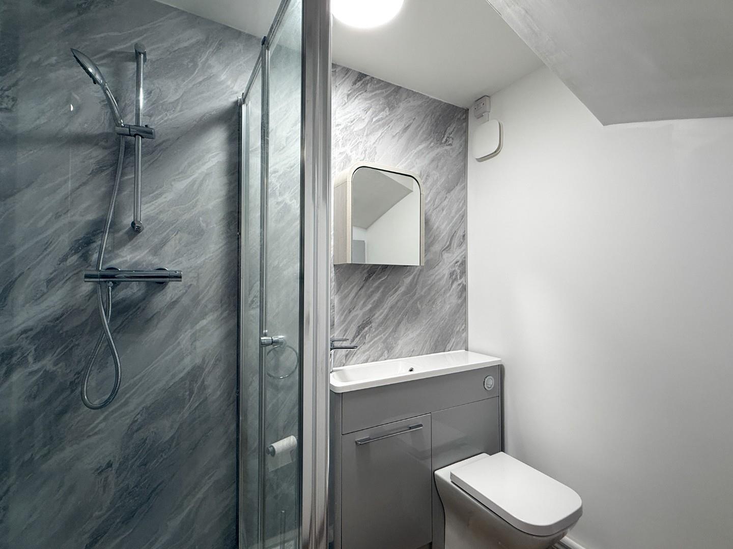 The property features a modern shower room and includes a dedicated shared parking space — a rare benefit in the city centre.