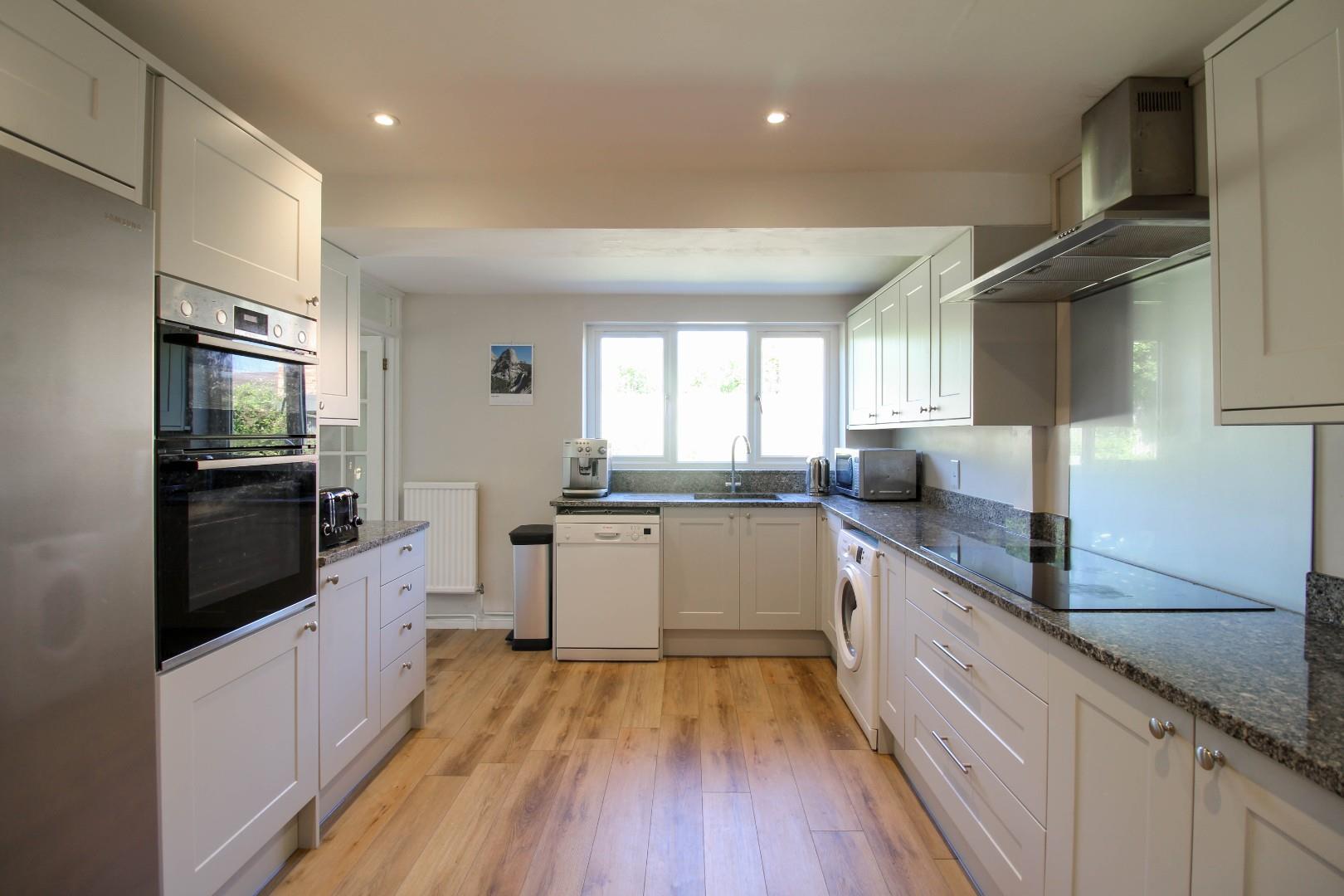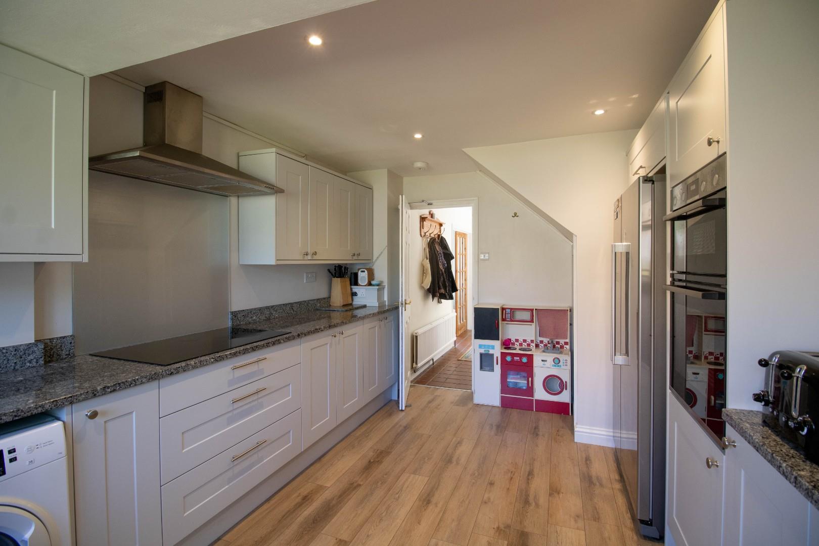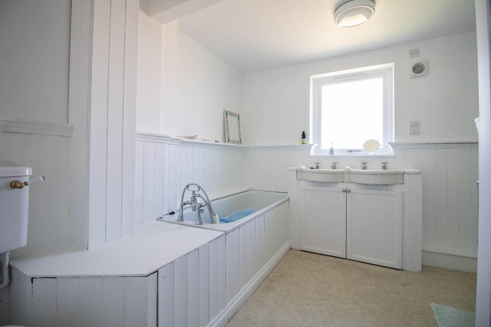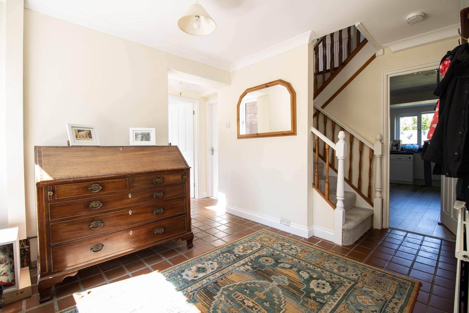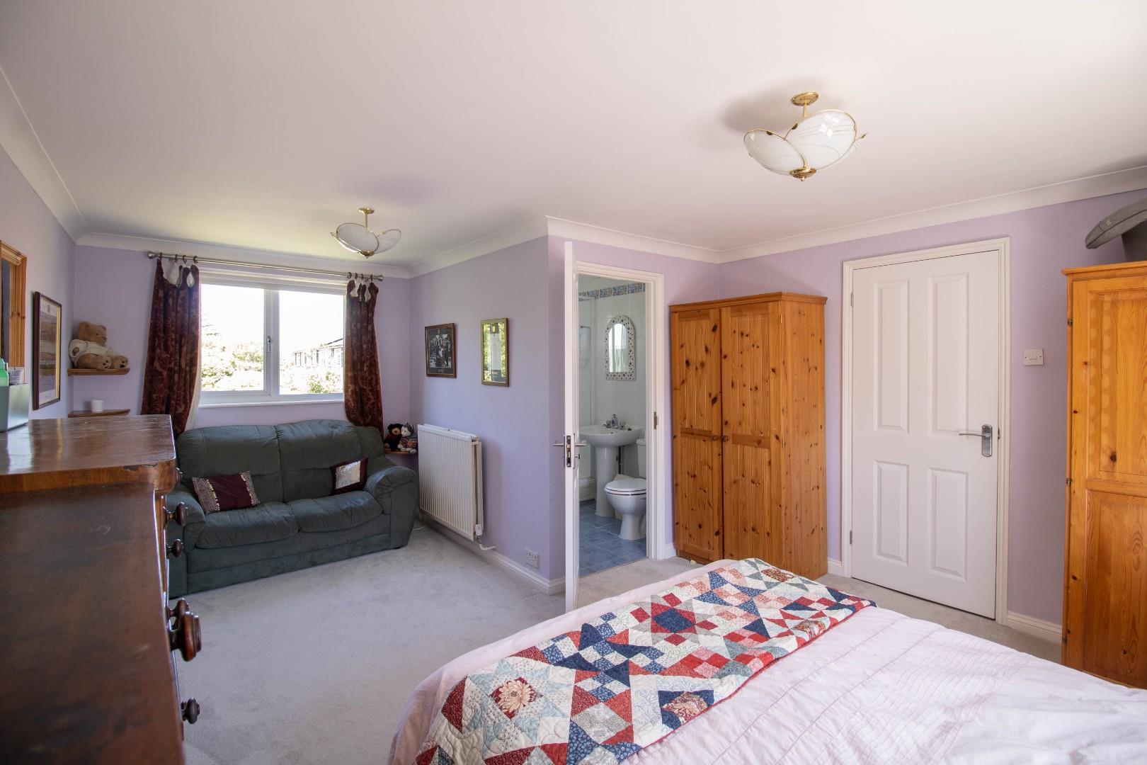Upstairs are four bedrooms, all of which are comfortable doubles. The principal bedroom is particularly spacious and includes an ensuite shower room. The family bathroom has an airing cupboard and a separate bath and shower, coupled with his-and-hers wash hand basins.