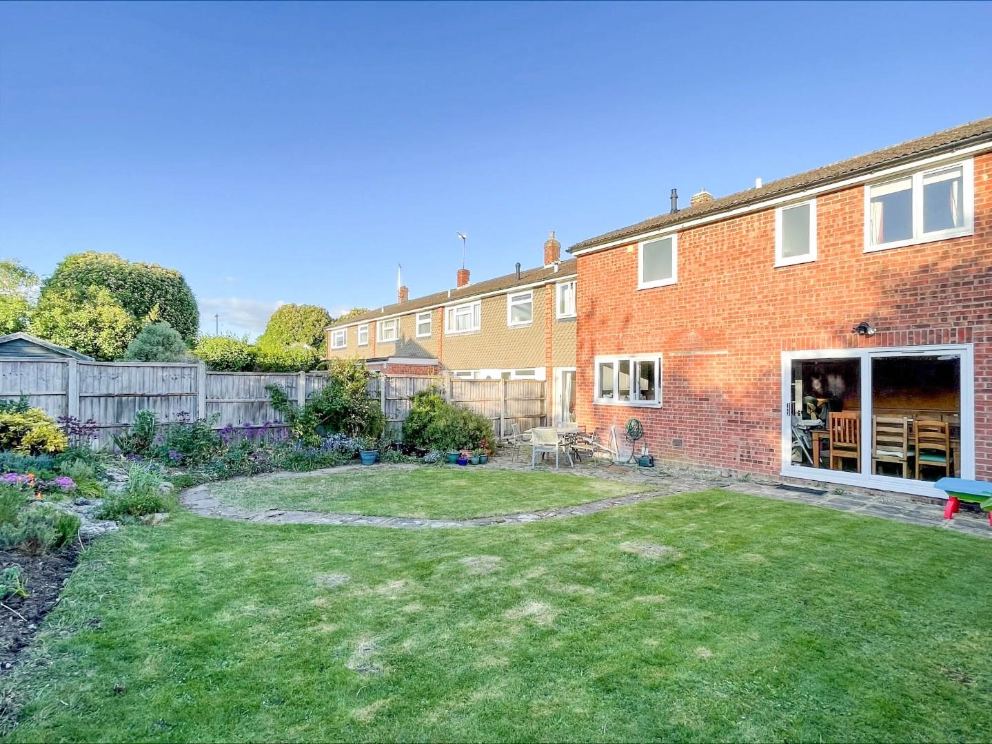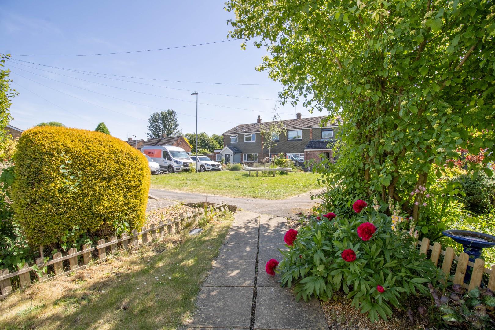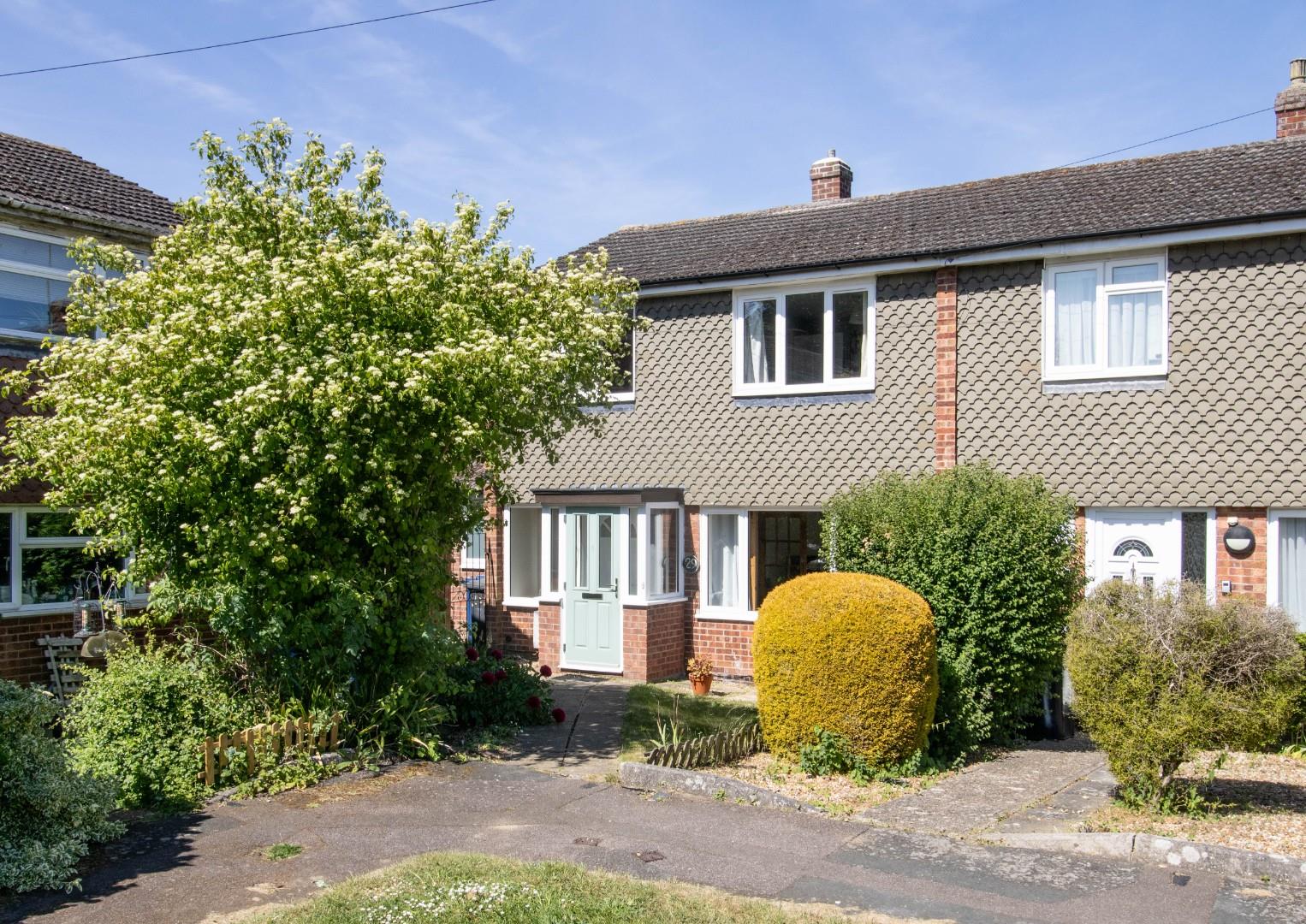 Outside, the front of the property has on street parking and there is also access to a single garage located en-bloc just a short walk from the property. The front of the property overlooks a well-tended communal green with a seating area. The house sits behind an established open-plan garden, partially enclosed by picket fencing and with a pathway to the main entrance. A side gate leads to the property's wonderful rear garden which has been well manicured and benefits from sunshine throughout the day. There is a useful storage shed and a terrace, well suited to alfresco dining. The remainder is laid to lawn and bordered with raised herbaceous beds and a number of trees including a plum tree which produces a bountiful crop. The whole is enclosed by fencing.