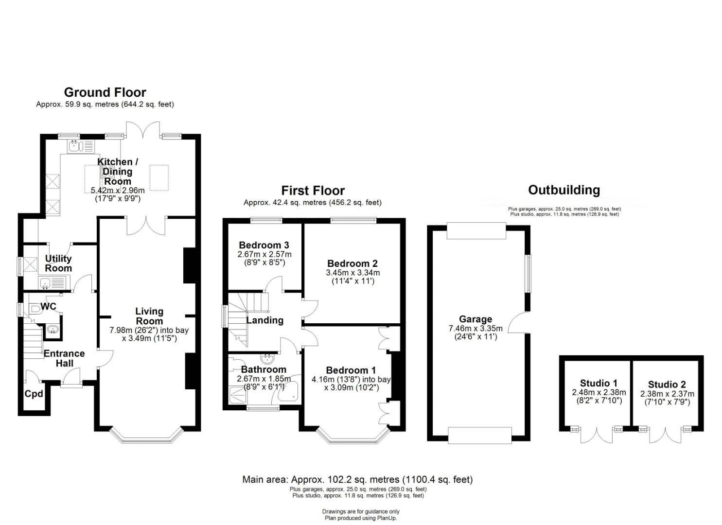Outside, the front of the house is set back behind a mature hedgerow and shingled driveway. There is also a concrete hardstanding with vehicular and pedestrian access to a single garage. There is a sizeable south-facing rear garden which extends to approximately 123ft (37.5m). There is a paved terrace, well suited to alfresco dining. The remainder is laid to lawn and stocked with a variety of mature trees, shrubs, and established herbaceous borders. Of particular note is the properties' fully insulated studio, split into two separate workspaces with power, electric heating and lighting installed.