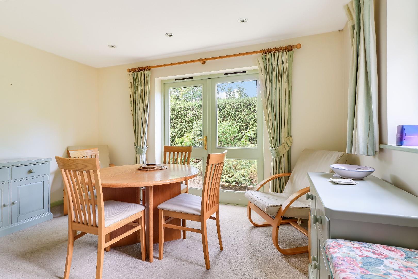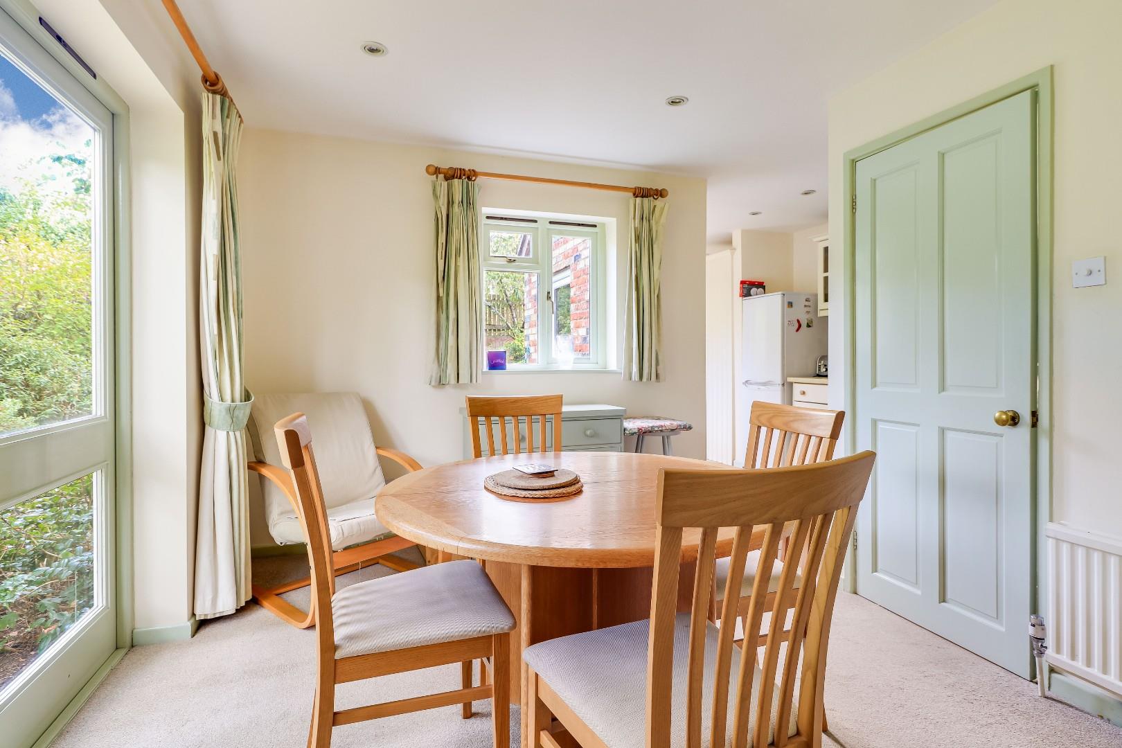 Outside, there is a private and established rear/side garden, which adjoins tennis courts and provides raised flower and shrub borders, block paved pathways, a kitchen garden, brick-built barbeque and an outside dining area.