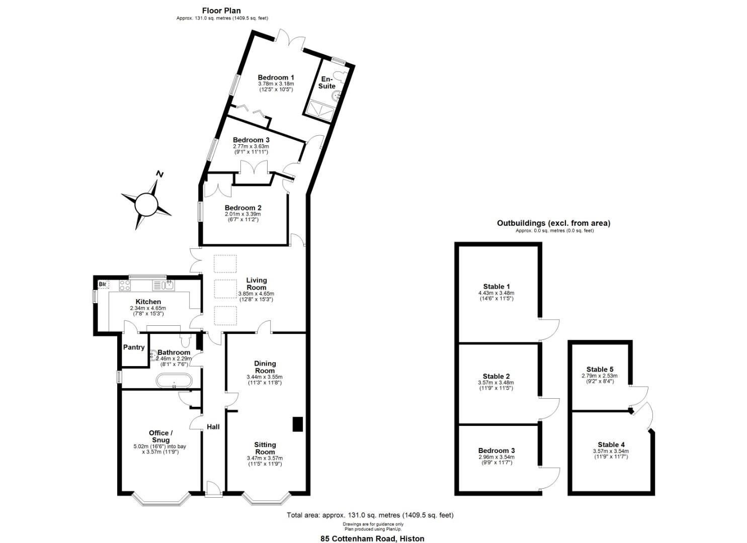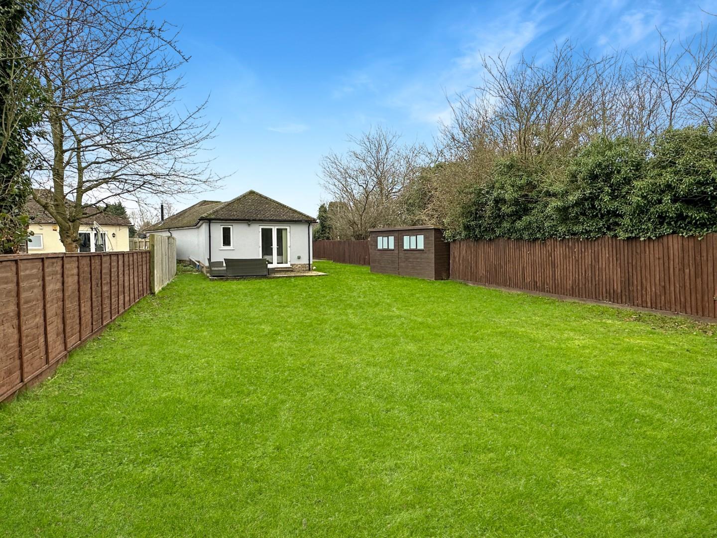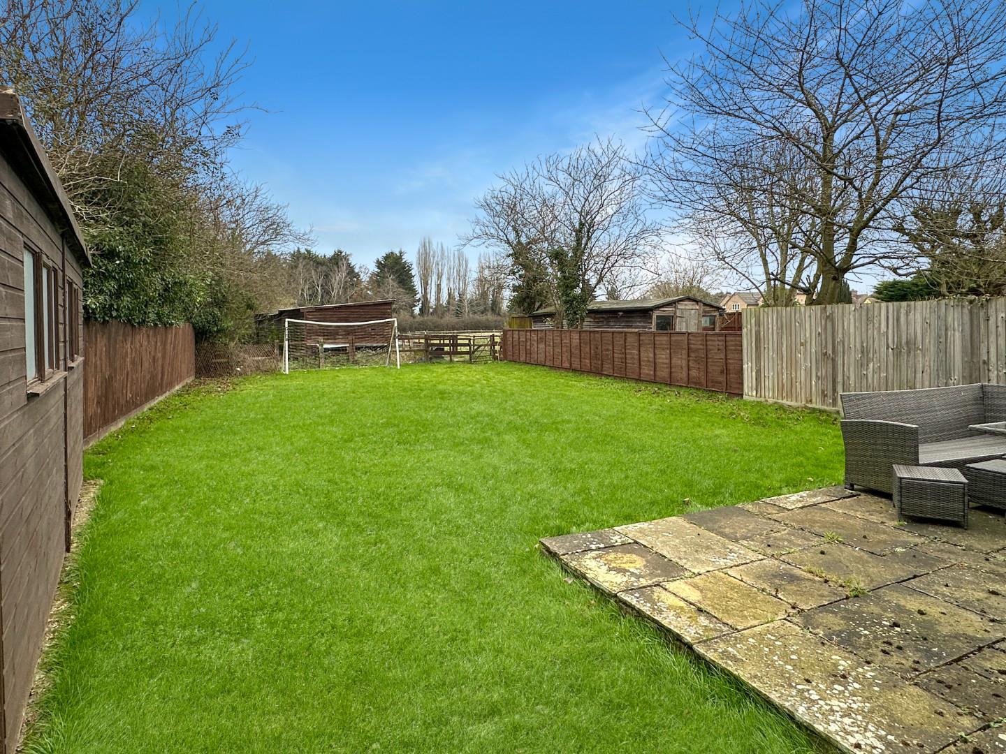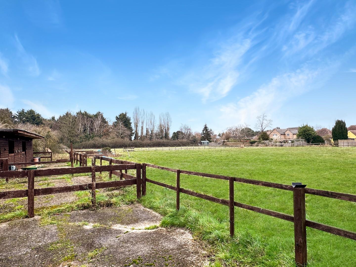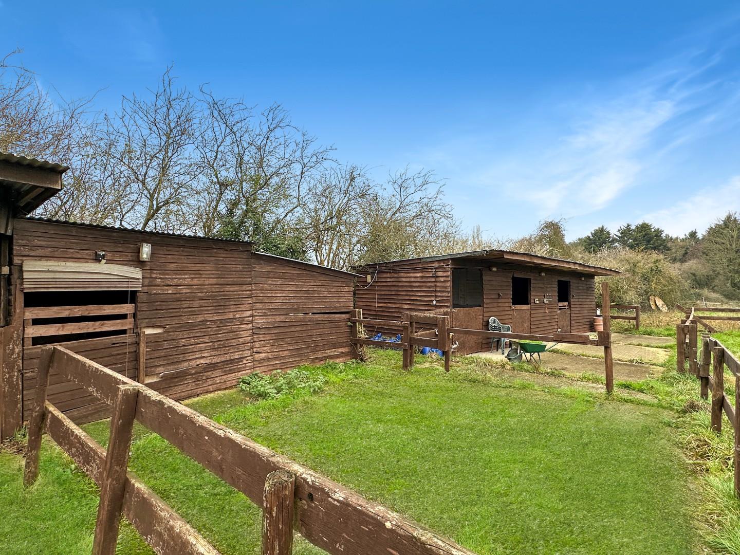 Outside, the rear garden is predominately laid to lawn with tall trees set to one side, providing good privacy. There is a useful timber shed ideal for garden storage. A pedestrian gate from the garden leads to five stables with hard-standing areas in front and the paddock. Separate vehicular access to the paddock is from the main Cottenham Road.