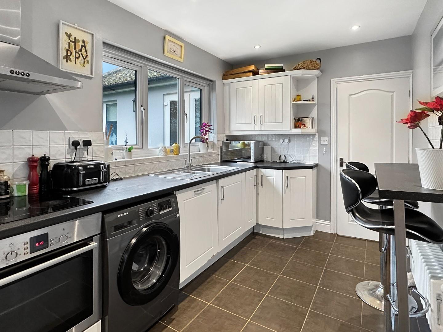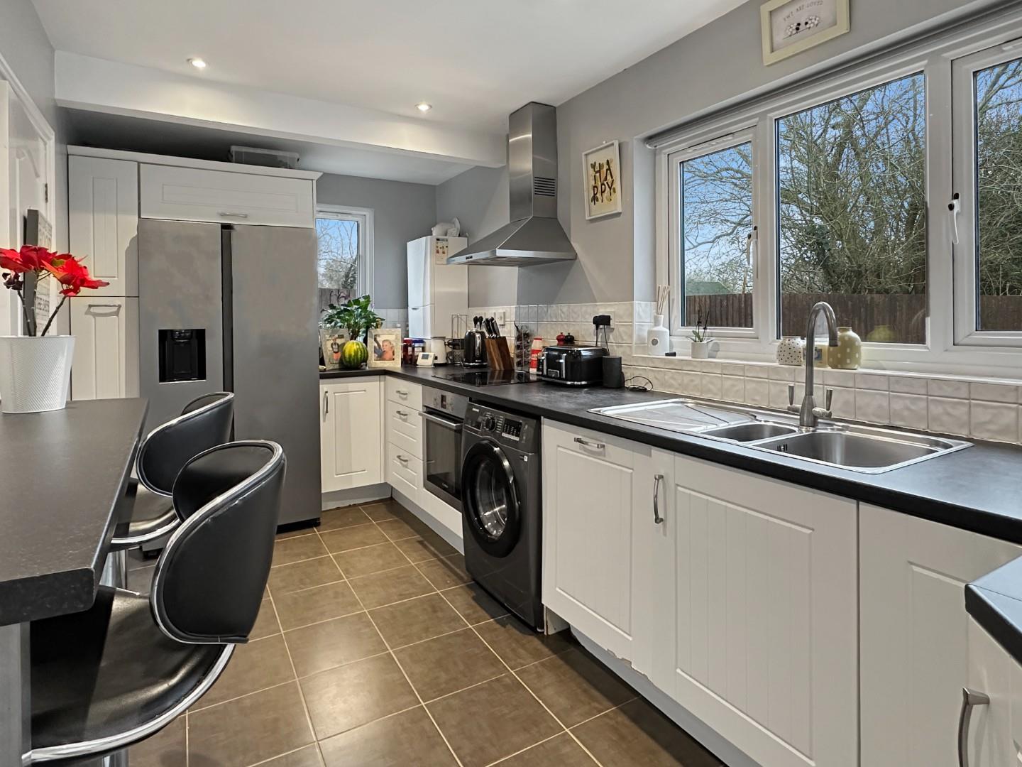 The accommodation has been extended, re-modelled and significantly improved to create extensive living over one floor. The accommodation includes a long entrance hall which leads to an open plan sitting/dining room with bay window and wood burning stove, a snug/office/bedroom 4 with bay window and modern family bathroom suite. A well-equipped and fully functional kitchen opens to a large, central living/dining space with access to a patio area and rear garden beyond. A rear inner hallway leads to three double bedrooms, all providing built-in storage. The principal bedroom has an en suite shower room and double doors opening to the garden.