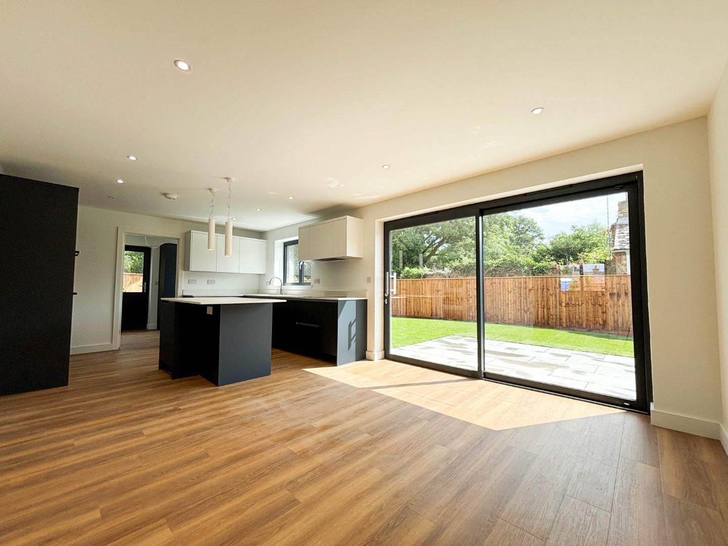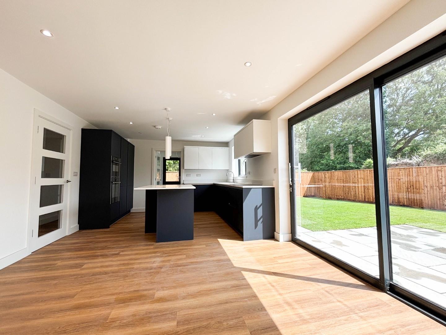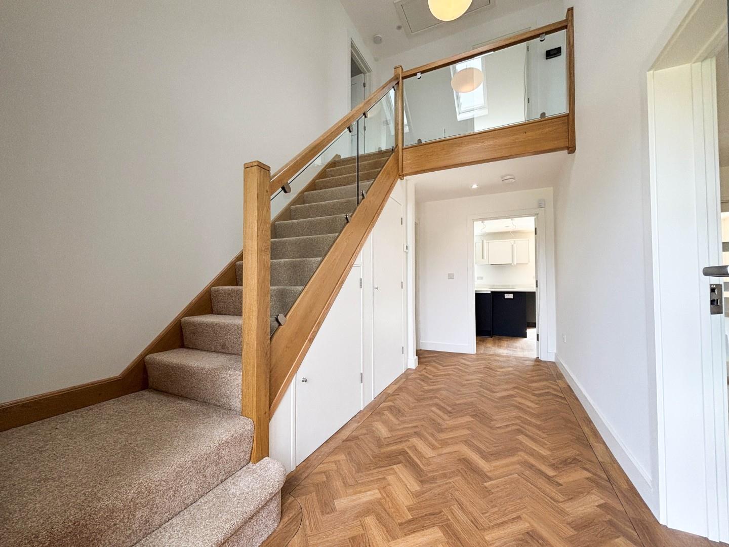 On the ground floor there is a welcoming reception hall featuring attractive Amtico flooring in an oak herringbone style and feature galleried oak handrail, newel post and string with glass balustrade staircase leading to the first-floor accommodation. The reception hall leads to all ground-floor accommodation, creating a nice sense of flow. There is a beautifully fitted kitchen/dining room with a range of contemporary fitted base and wall units with Quartz surfaces and upstands, along with integrated Neff appliances and Quooker boiling water tap. This bright and spacious room has patio doors opening on to the rear terrace and glazed sliding pocket doors that open through to the living room, creating a great entertaining space. There is also a separate family room, well-fitted utility room and ground floor cloakroom with WC. The ground floor has underfloor heating serviced by the air source heat pump.