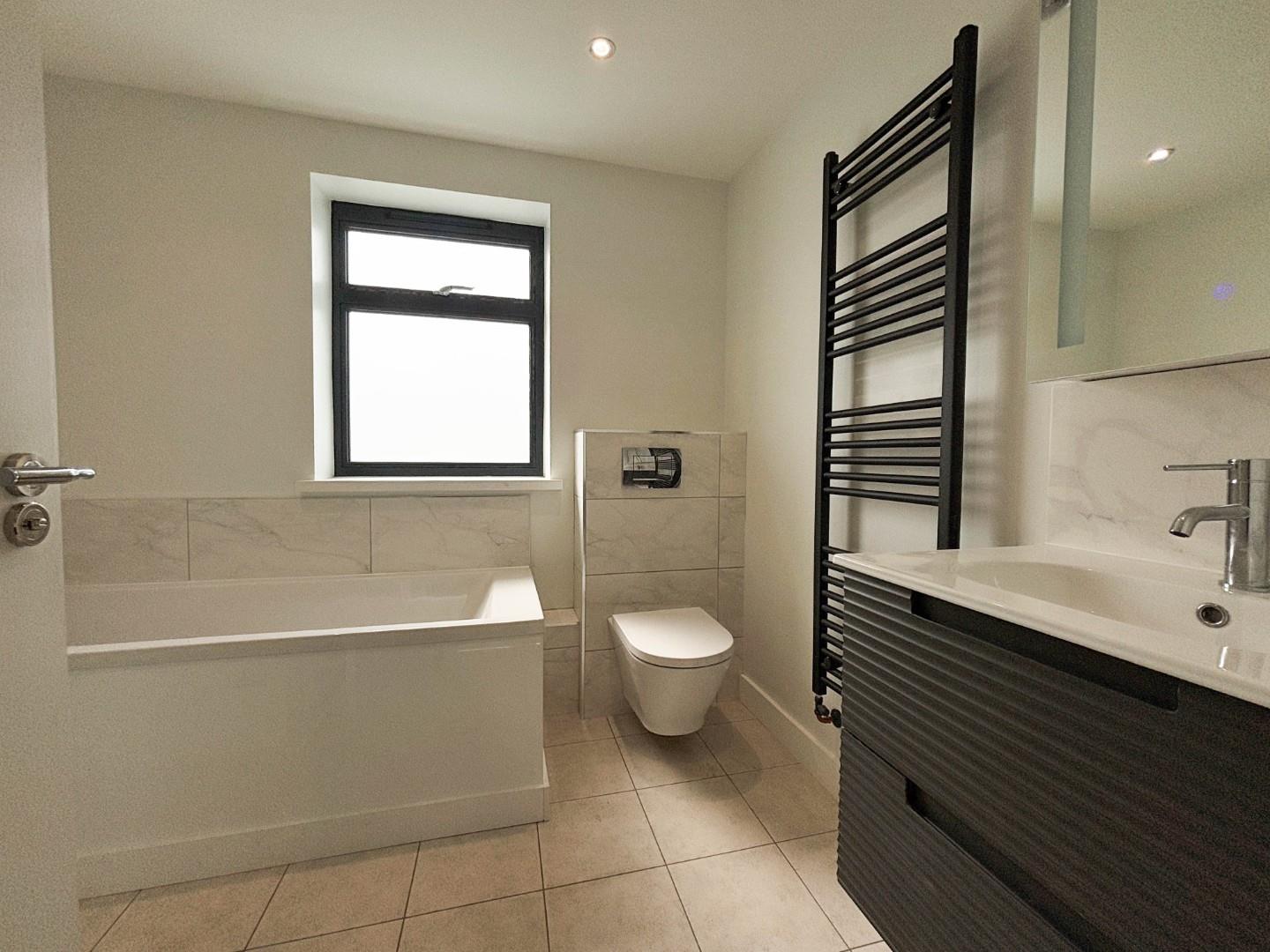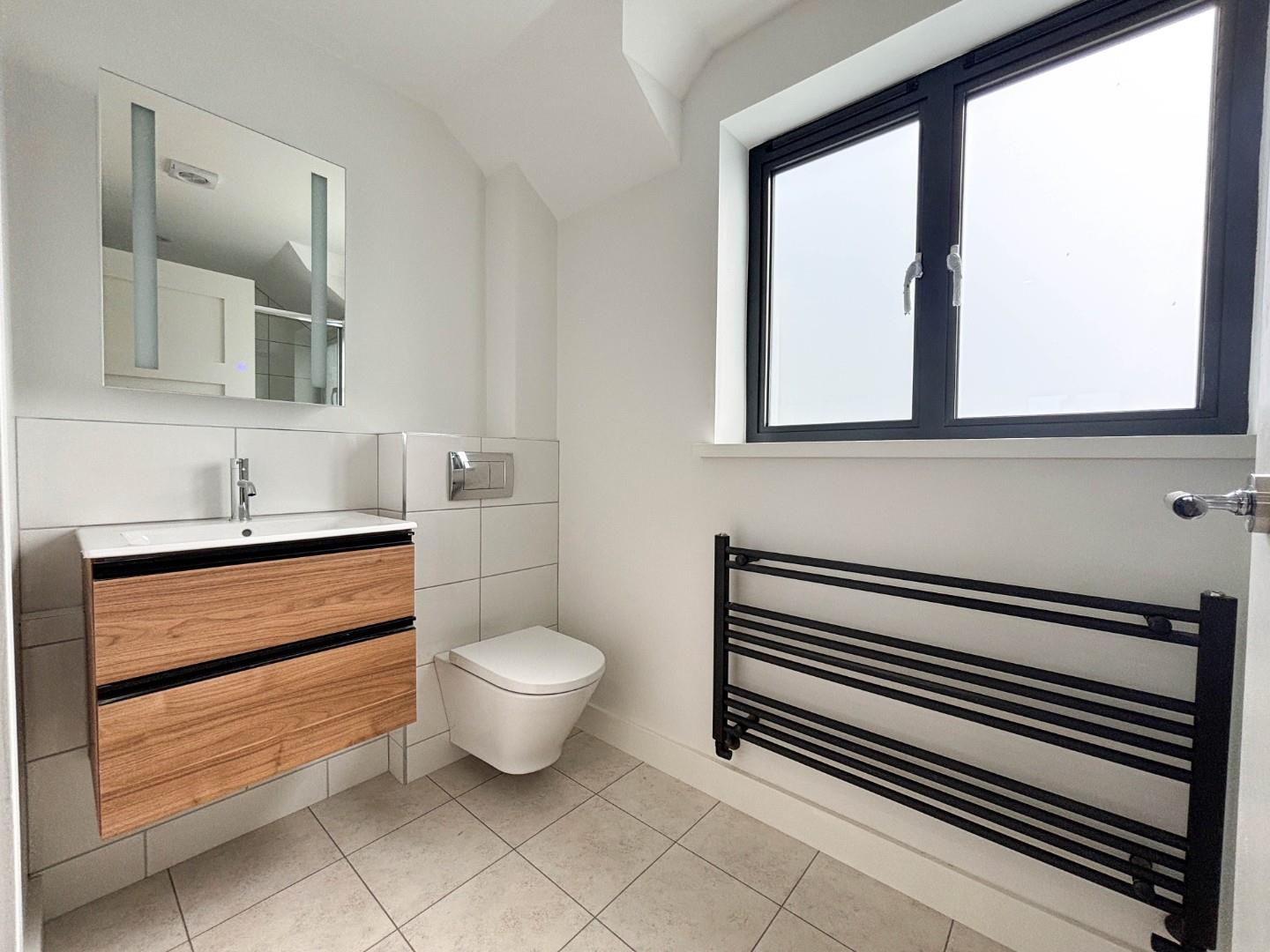 To the first floor, there is a spacious light-filled galleried landing with drop down timber ladder creating access to the large, fully boarded loft space. The accommodation to this floor comprises four double bedrooms, to include the principal bedroom with walk in dressing area, fitted with sliding wardrobe doors and in turn leading to a well-fitted en-suite shower room. There is also a family bathroom with bath, separate shower cubicle, low level WC and vanity wash hand basin and mirrored wall cabinet with light and shaver socket. All bedrooms and stairs are carpeted and bathrooms feature Amtico flooring. First floor has radiators serviced by the air source heat pump.