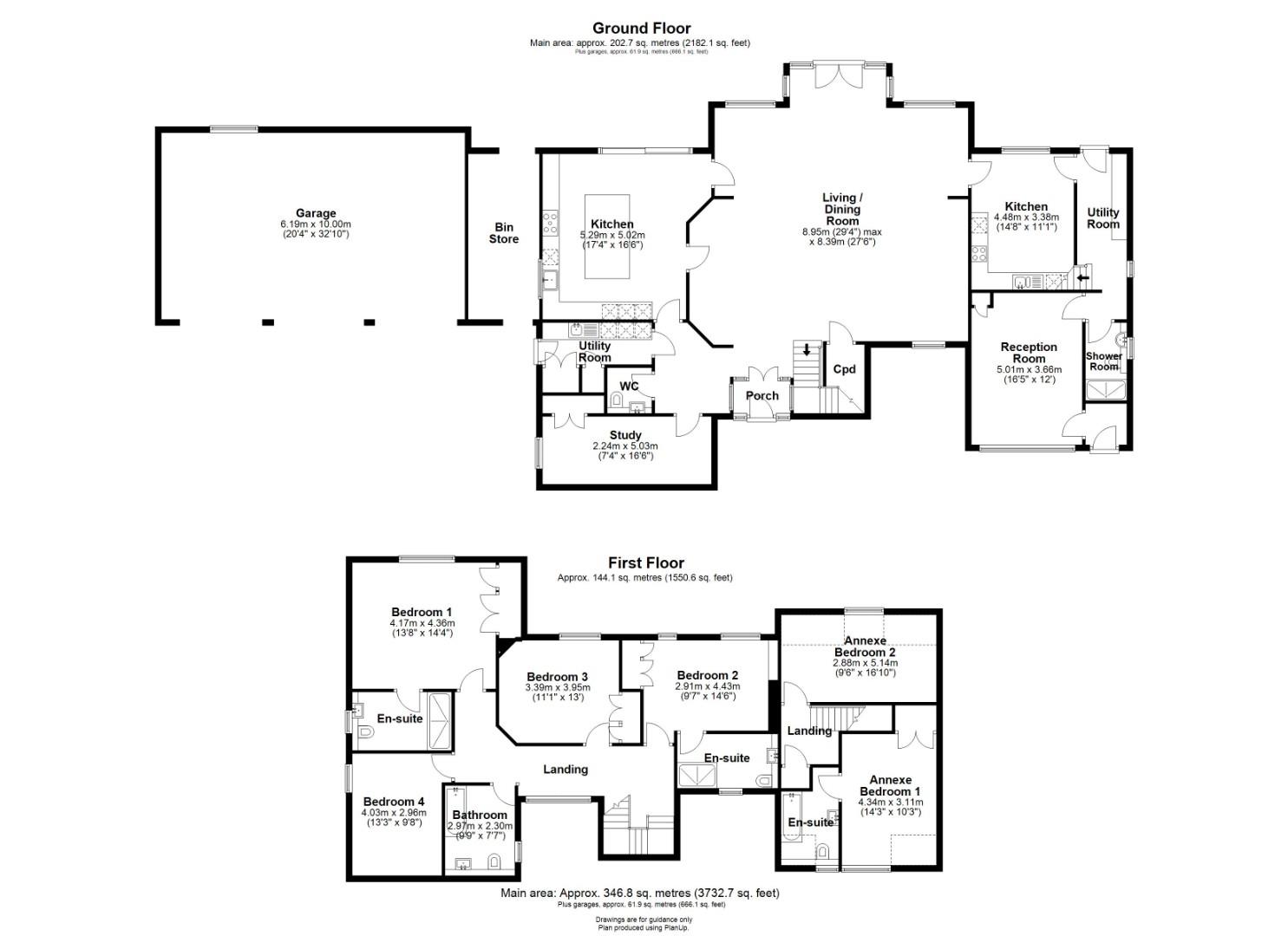 Upstairs, off the galleried landing are four double bedrooms, two luxury en suite shower rooms and a luxury family bathroom.