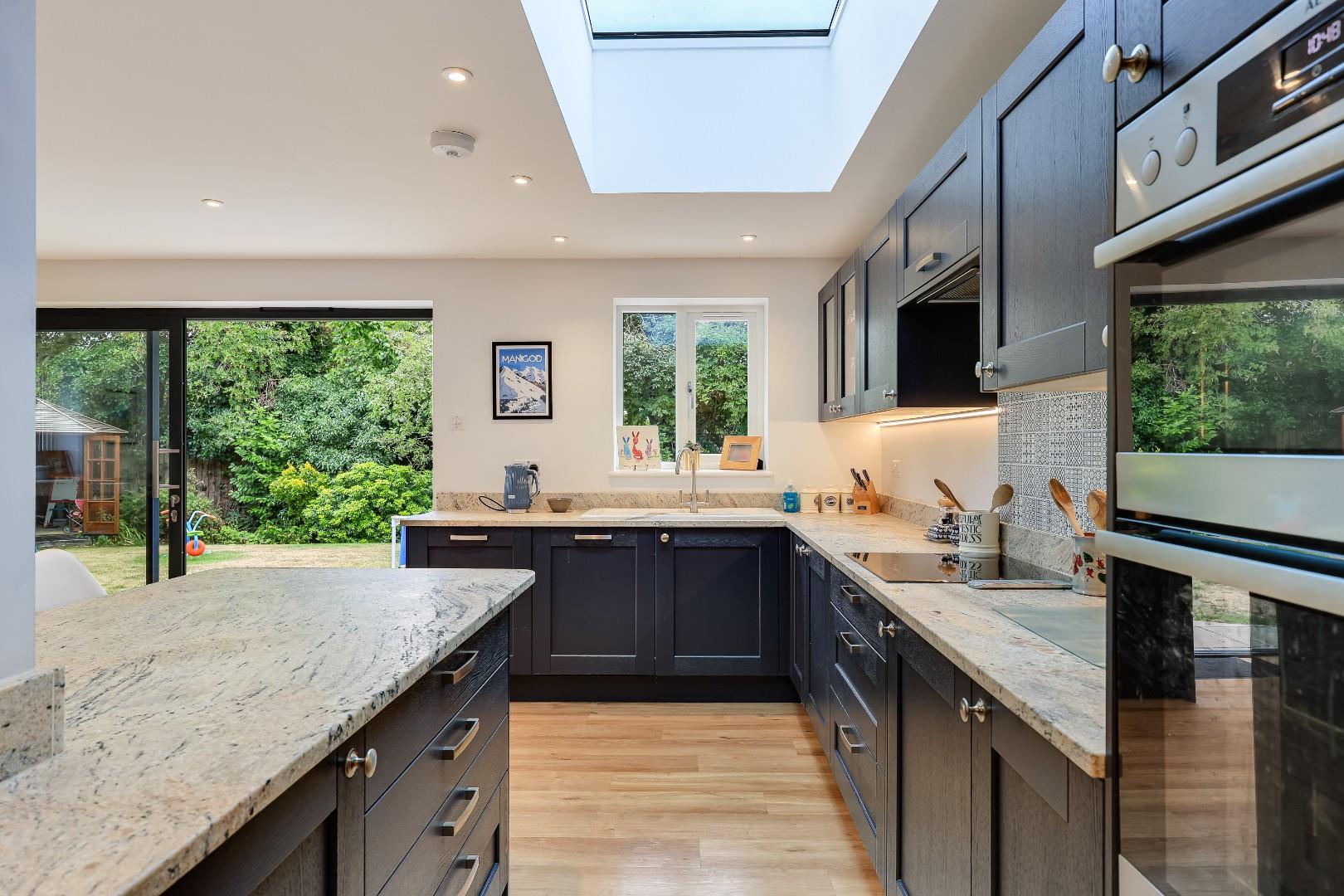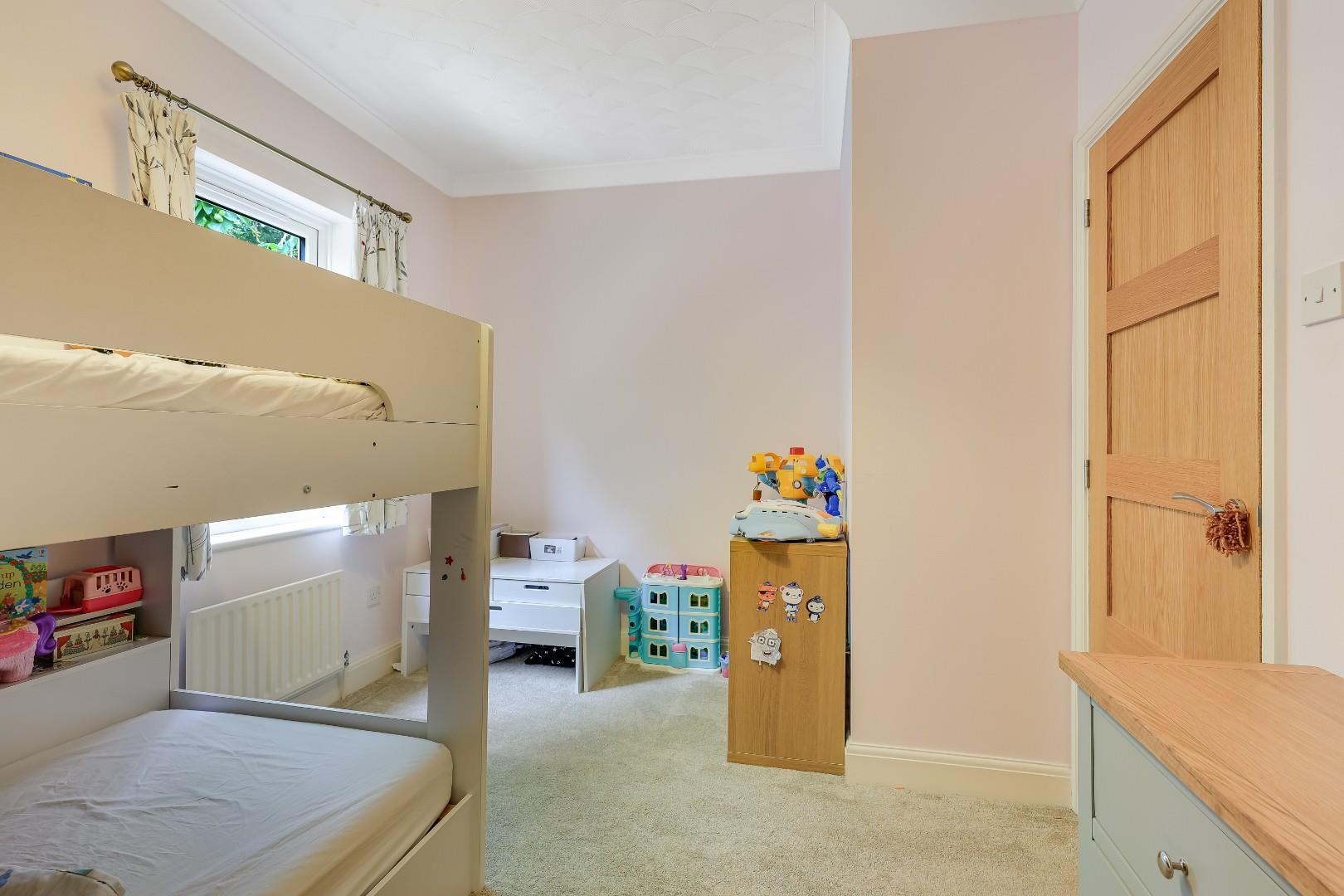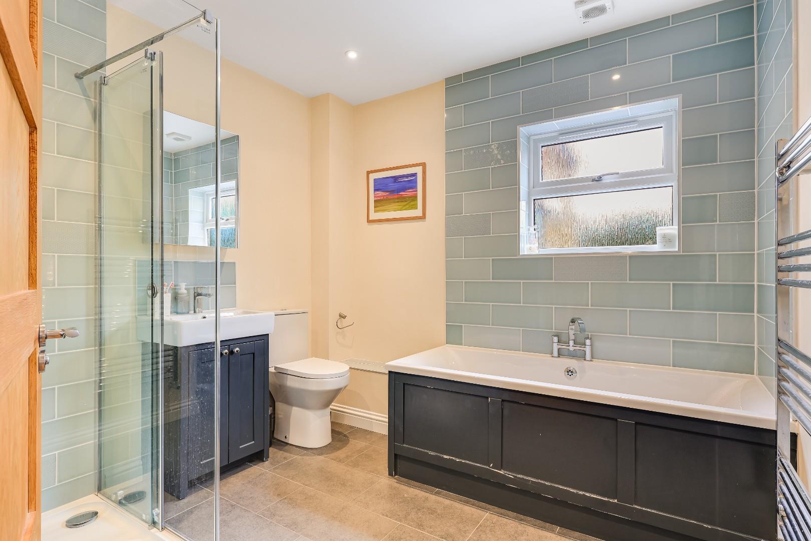 To the first floor, the property benefits from four well-proportioned bedrooms including an enviable master bedroom suite with built-in wardrobes and an en-suite shower room. Serving all three further bedrooms is a family bathroom with a panelled bath, a separate walk-in shower, a low-level WC, a heated towel rail and a wall mounted sink with a vanity unit below.