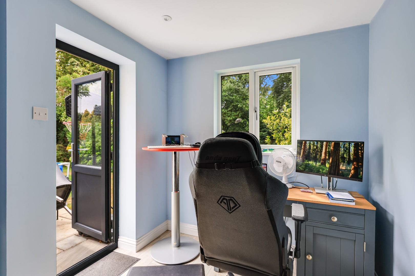 Externally, providing access to both 4 Curringtons Close and the neighbouring property is a private gravel laid road which in turn expands to an extensive gravel laid driveway providing parking for numerous vehicles. The property benefits from a double garage which has had 50% of its footprint converted into a convenient work from home space and storage. The rear garden of the property is fully enclosed, is laid predominantly to lawn and has a patio area accessible both from the dining area and the home office. Surrounding the plot is an array of trees and foliage which offers that feeling of tranquility and seclusion.