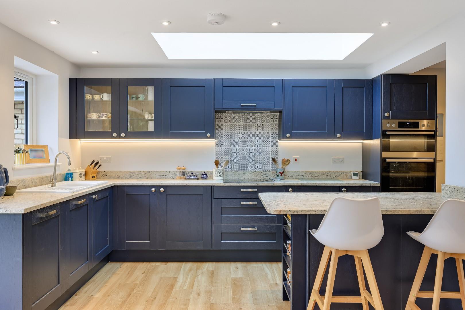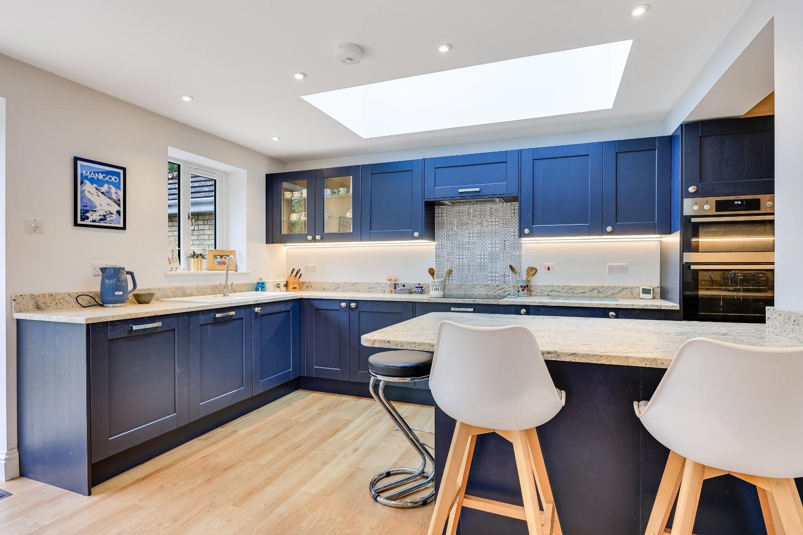 Originally constructed in 1995, this detached family home has later been extended over two storeys and provides generous living accommodation measuring 1679.1 sqft/156 sqm. To the ground floor the property benefits from a spacious entrance hall, with storage beneath the stairs and two reception rooms which includes a 21ft lounge and a spacious family room/playroom. The rear of the property has been extended to create a substantial kitchen/dining room with a roof light and large sliding doors which open into the rear garden. The kitchen for the property is of a traditional shaker style with storage at both eye level and base level, a quartz work surface with breakfast area, a ceramic sink with drainer and integrated appliances which includes a double oven, an induction hob and a dishwasher. Completing the ground floor is a prep kitchen and utility room with access into the rear garden.