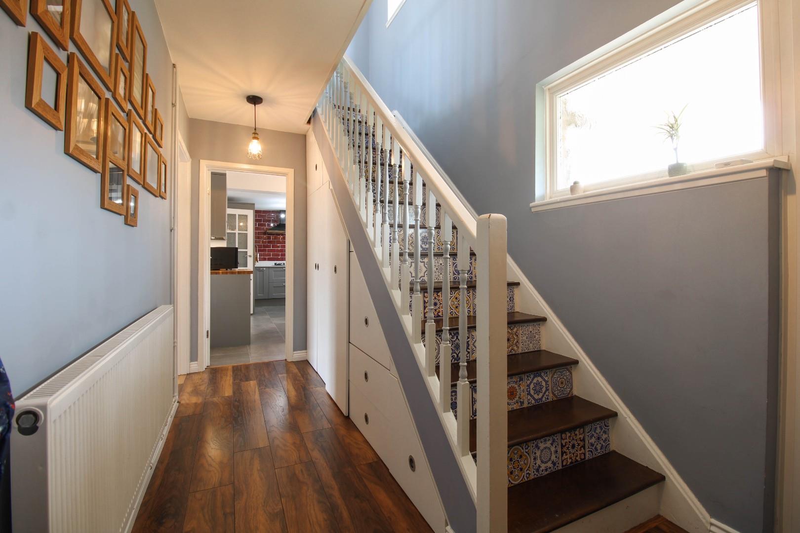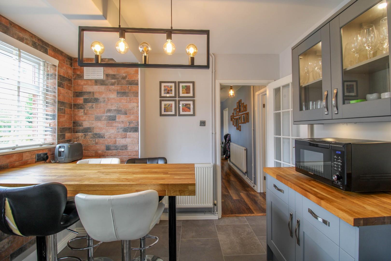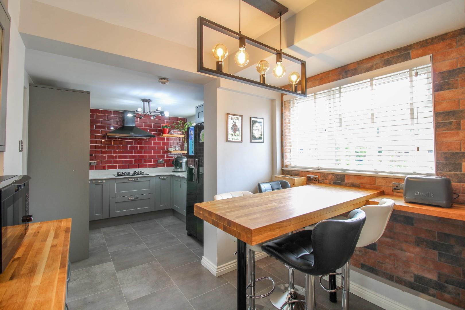 There is an entrance hall with plenty of understairs storage and space for coats and footwear. The staircase is of particular note is the attractive feature staircase with solid wood treats and tiled risers. The living room has a feature electric fire, contrasted by an attractive surround, built-in shelving and storage cupboards. Adjoining the living room is a bright, double-glazed conservatory with French doors to the rear garden and also benefitting from a recently installed wifi-enabled Daikin air conditioner. The dining room also has delightful views over the rear garden and a sliding door opening onto an outdoor terrace. The kitchen/breakfast room has been fitted with a stylish range of units and is contrasted by solid oak worktops, exposed brickwork, and attractive tiling. There is a breakfast bar peninsula, various integrated appliances, a water softener and access to a rear lobby with refitted cloakroom W.C. and a door to the rear garden.