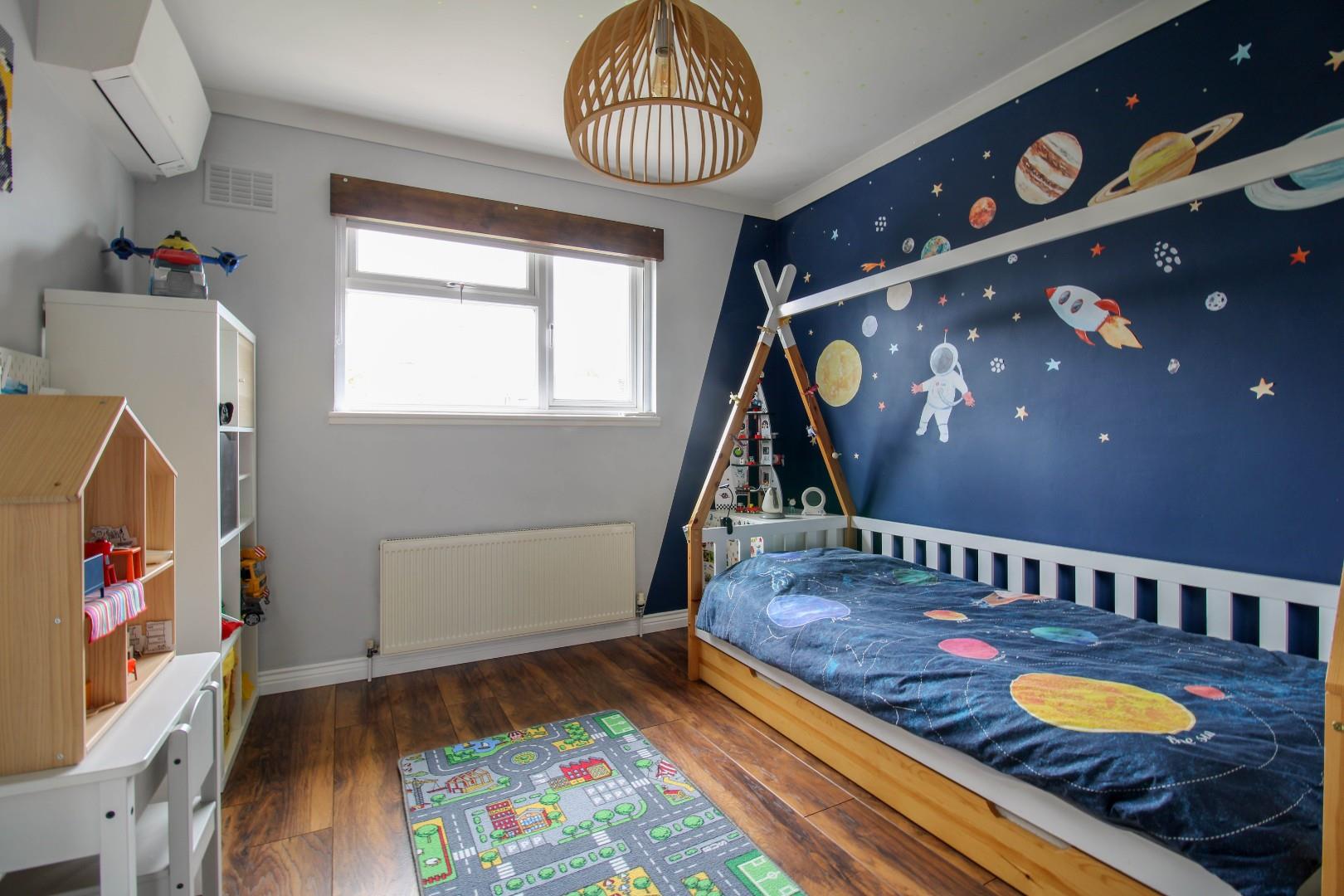 Upstairs are three good-sized bedrooms, the principal bedroom is particularly spacious and has built-in sliding mirrored wardrobes. This room together with bedroom 2 again benefit from a wifi-enabled Daikin air conditioner. The landing has an airing cupboard with access to a partially boarded loft and the family bathroom, which has been fitted with a modern white suite.