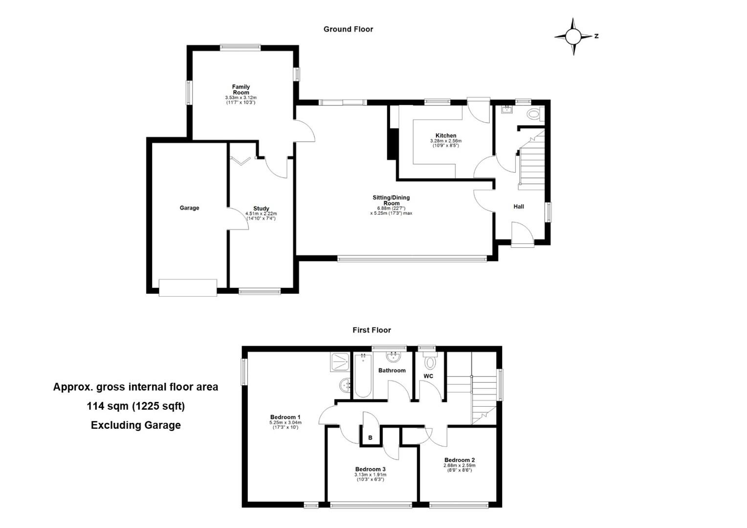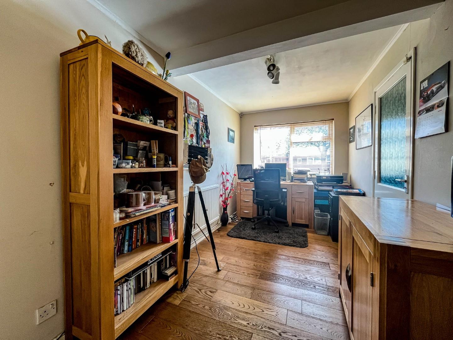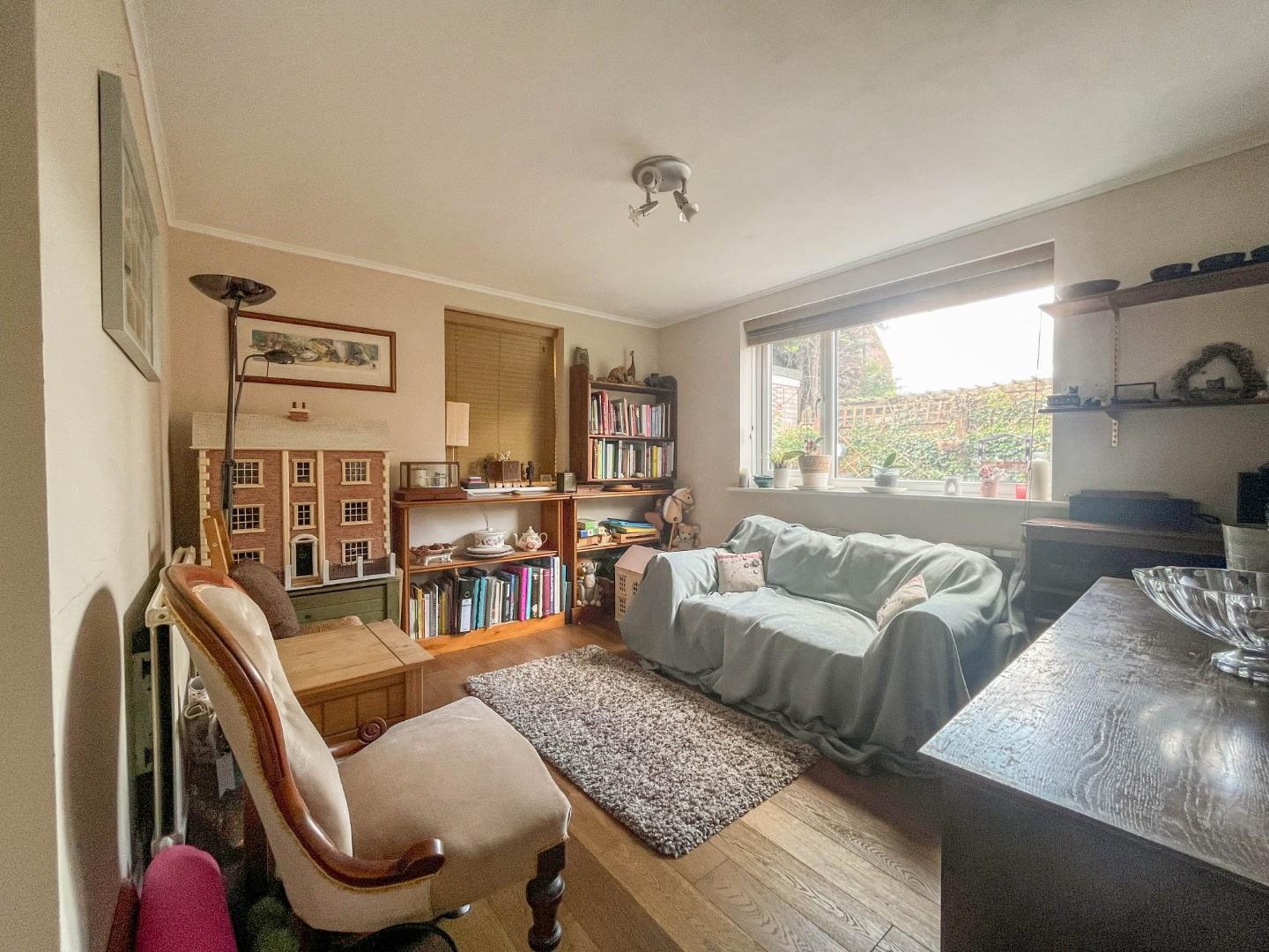 The ground floor comprises an entrance hall with solid wooden flooring, a side window, stairs to the first floor and access to a WC. Fitted with a range of base and wall units, the kitchen has a tiled floor, granite-effect worktops with tiled splashbacks, a stainless steel sink with a mixer tap and draining board, an integrated double oven with a five-ring gas hob and an extractor chimney over, plumbing for a dishwasher and a glazed door to the rear garden. The well-proportioned living/dining room is L-shaped and has large windows to the front and sliding patio doors to the rear. A side extension provides a family room to the rear and a study to the front, with direct access to the adjoining garage. Either of these rooms could be made into a fourth bedroom if desired.