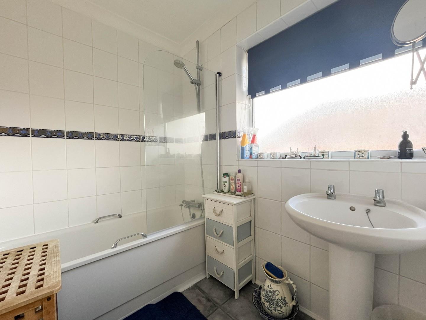 On the first floor, the spacious landing has a window to the side aspect and a hatch to the loft space. There are three good-sized double bedrooms, with the master being particularly spacious and including a corner shower cubicle and a wash basin. Extensively tiled, the family bathroom has a panelled bath with a shower attachment and a pedestal wash basin. There is a separate WC next to the bathroom.