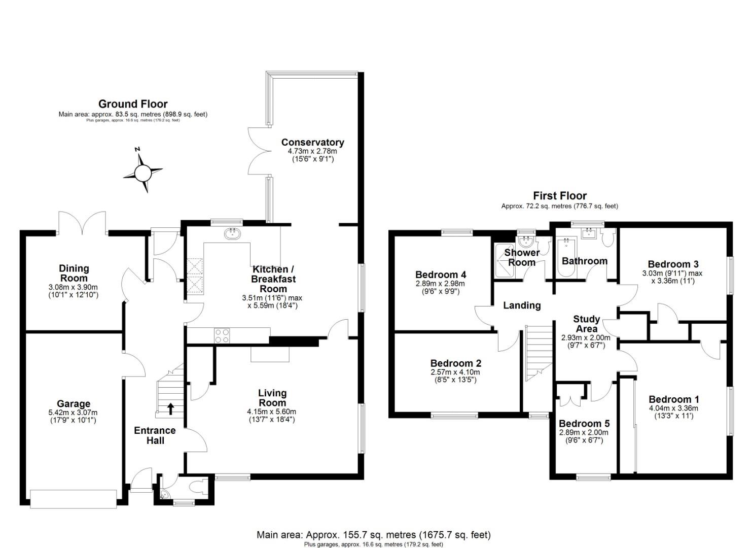 On the first floor there is a generous landing incorporating a study area, five good sized bedrooms, family bathroom and a separate shower room.