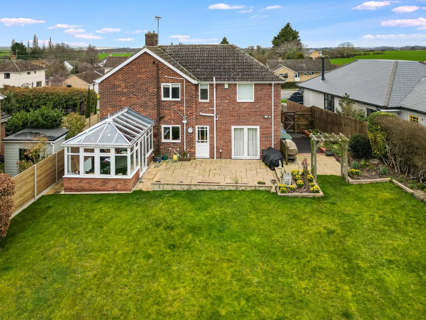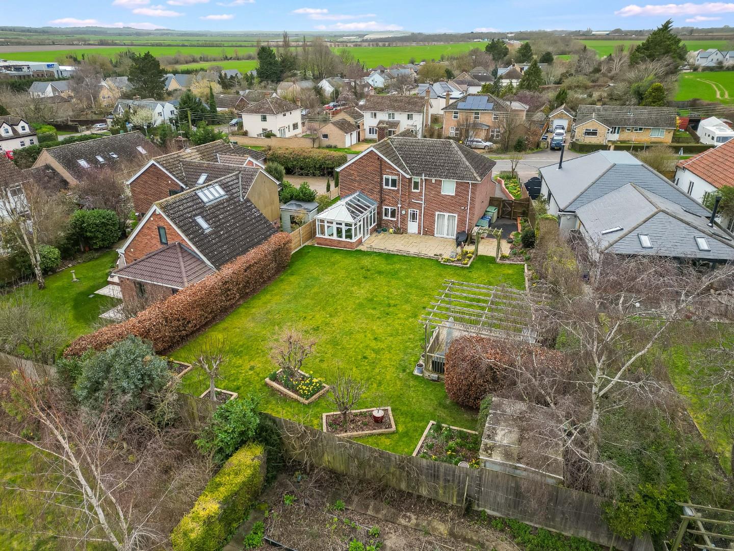 Outside, the property is set back from the road behind a neat lawn with flower and shrub borders and beds. A generous driveway accommodates at least four cars and leads to the garage with up and over door, power and light connected with space at the rear of the garage for a tumble dryer and additional fridge/freezers, plus a door into the reception hall. Gated access at both sides of the property leads to the rear garden which is predominantly laid to manicured and shaped lawns with flower and shrub borders and beds, generous paved patio area plus a raised decked terrace with pergola over and making an ideal space for summer evening entertaining and dining. Discreetly positioned towards the back of the garden is a large garden store and all enjoys excellent levels of privacy and seclusion.