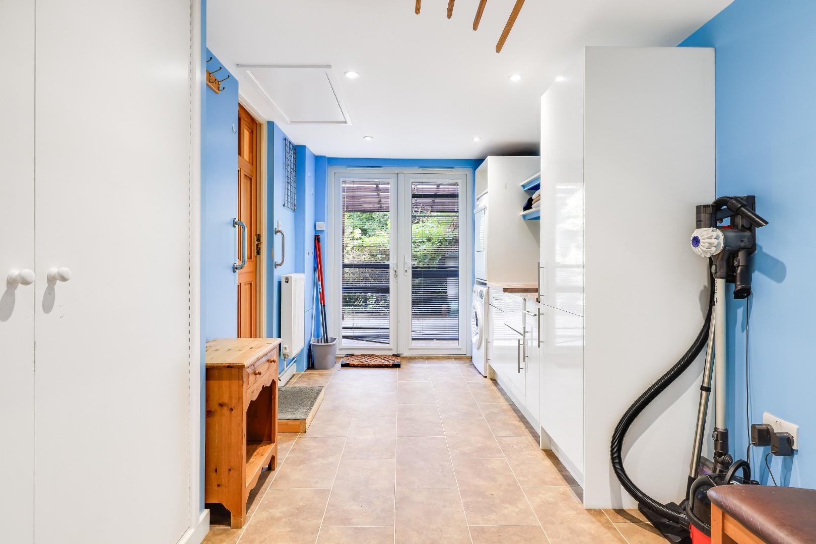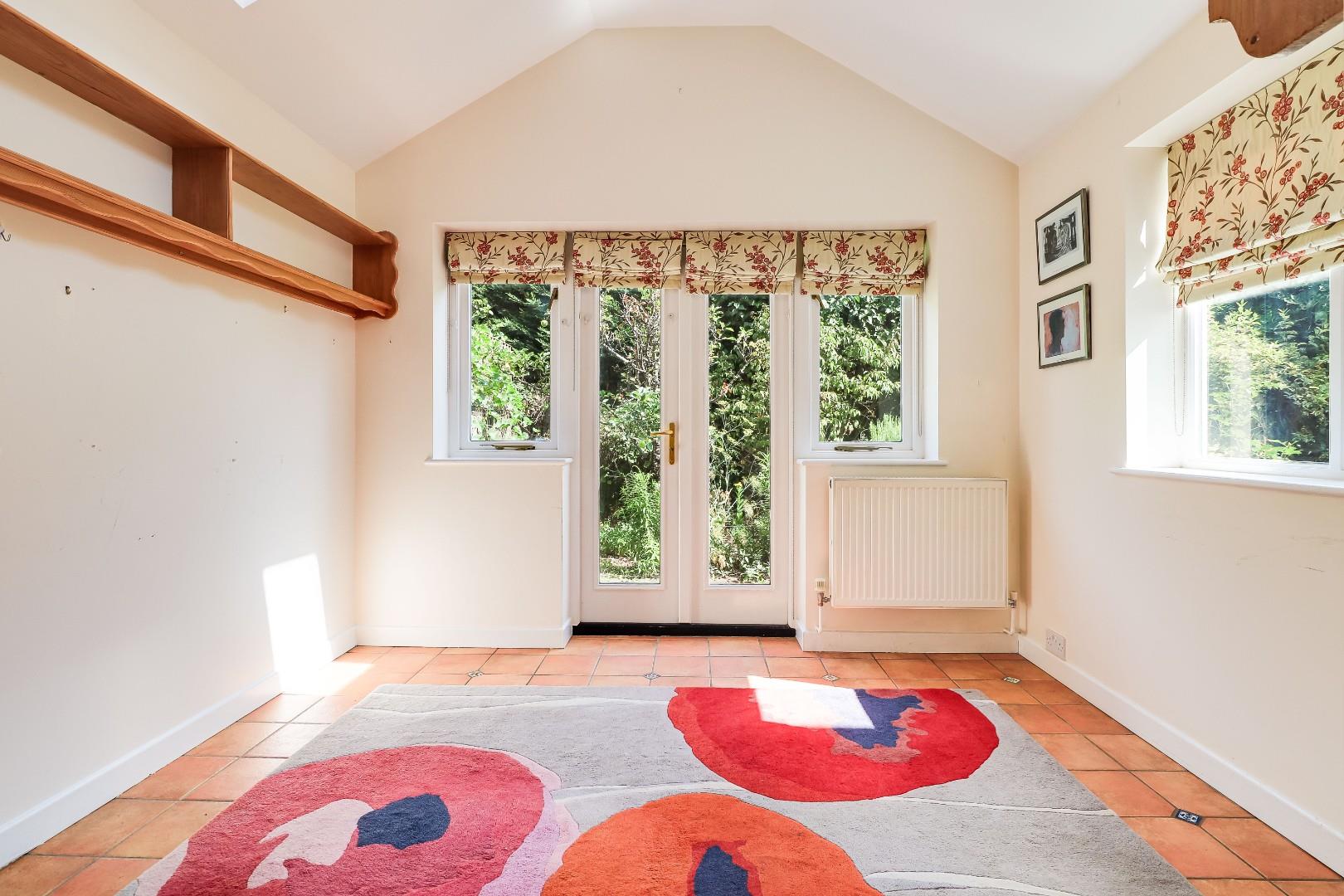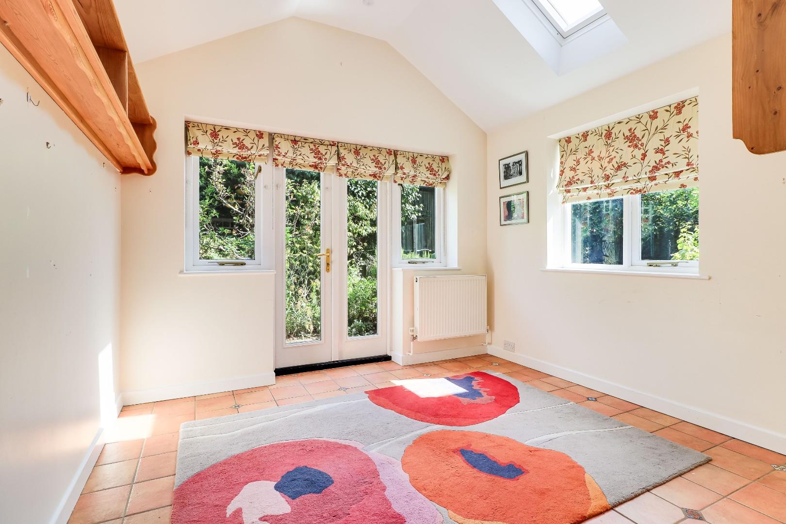 To the ground floor the property comprises of a porch, an entrance hallway with a shower room off and three reception rooms, which includes a living room with a bay window to the front, a light and airy garden room with double aspect windows and Velux windows above and a formal dining room, accessible off the kitchen. The kitchen of the property is fully tiled and benefits from generous levels of worktop space and storage at both base level and eye level. Completing the ground floor is a garage conversion which still retains a garage door to the front and is currently set up as a large utility room with loft space above.