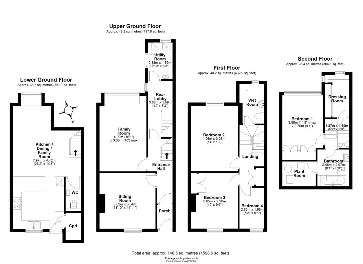 The second-floor accommodation is ideally set up as a principal bedroom level with a double bedroom, separate dressing room and a bathroom with an adjacent plant room and storage space under the eaves.
