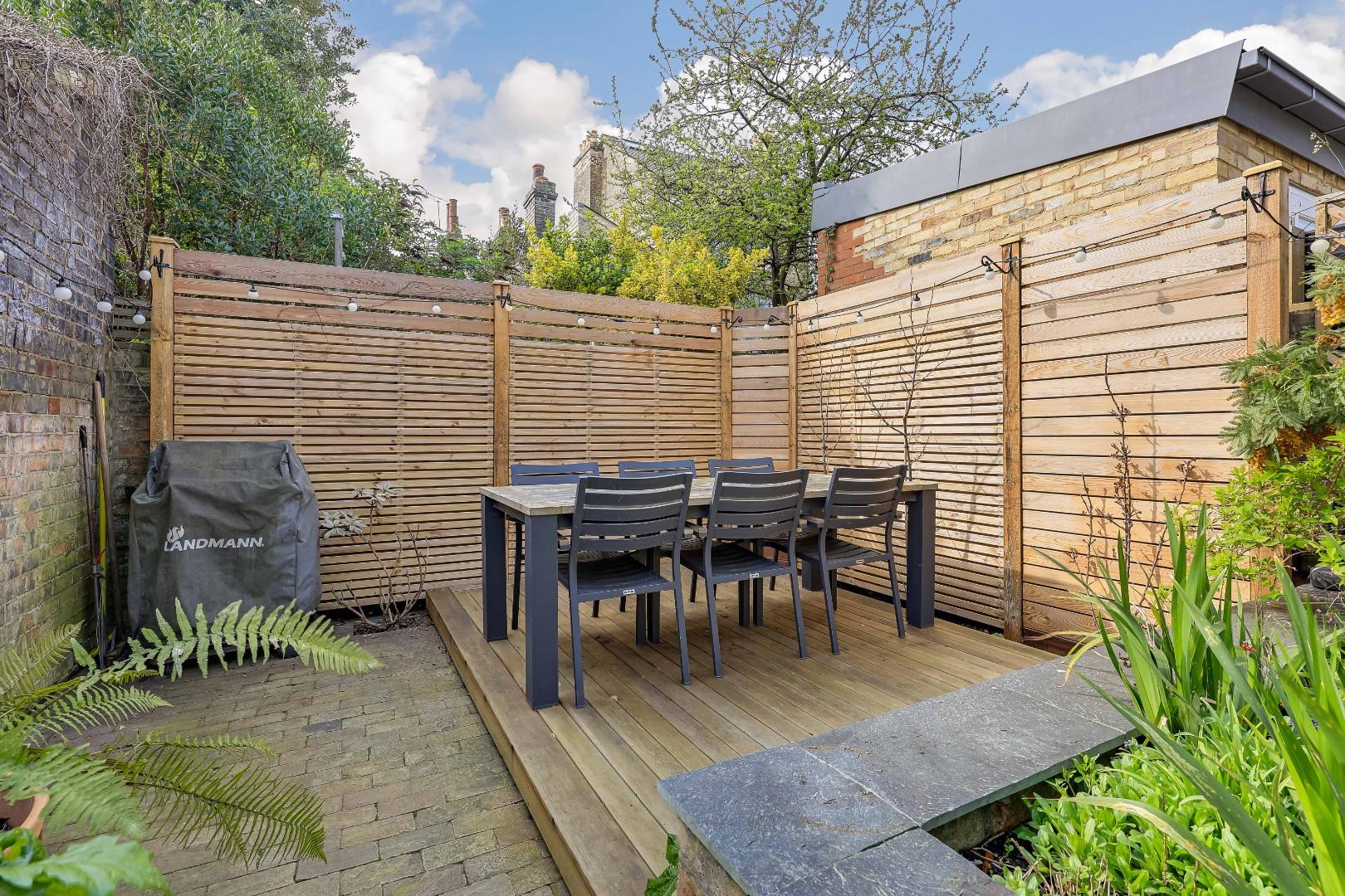 The rear garden has been beautifully designed and achieves a balance of aesthetics and functionality for easy maintenance. Raised flower beds add colour and scent, and a private seating area provides a perfect viewing spot of the garden and surrounding properties.