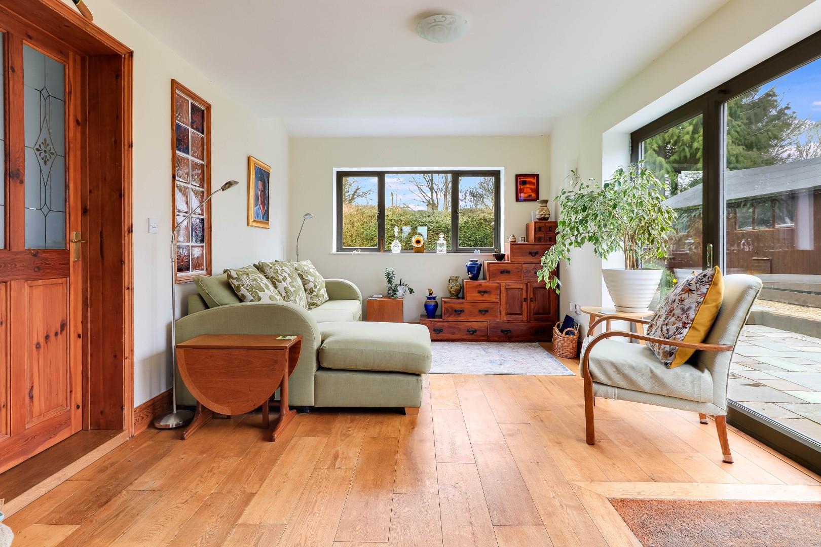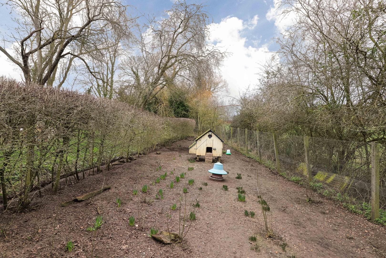 Externally, the property occupies a generous plot with driveway parking for at least two vehicles. The garden is split into four main parts including a substantial patio area off the bi-folding doors to the rear providing a great space for entertaining in the warmer months of the year as well as a decking area neatly placed to the side of the property and over looking fields, ideal for sitting with a coffee and taking in the nearby wildlife. There are two large lawn areas each benefitting from a wide range of herbaceous borders as well as a large timber-built garage/shed with power and lighting. To the rear of the plot is a large, enclosed area, which the current owner uses for rearing chickens. There is a private EV charger.