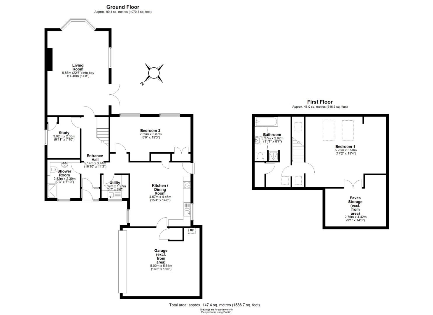 There are three well-proportioned bedrooms, with two located on the ground floor and an impressive master bedroom situated on the first floor. The principal suite benefits from its own dressing room and private bathroom, creating a comfortable and private retreat.