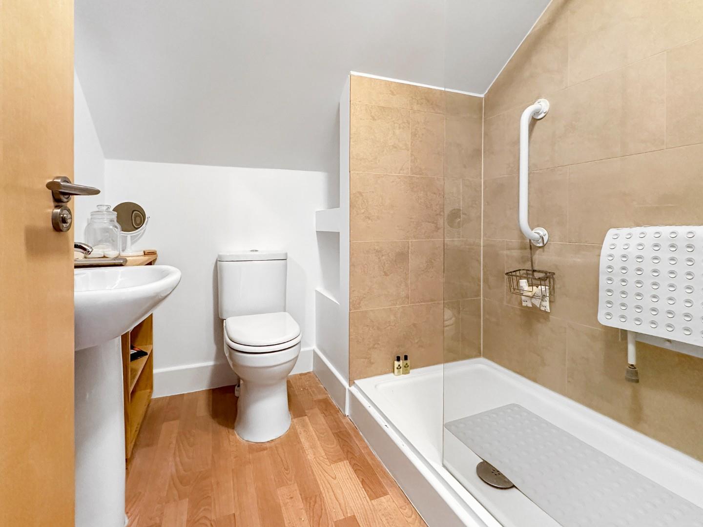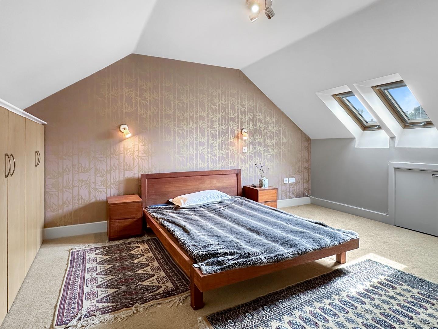 A spacious entrance hall with a staircase rising to the first-floor level, has a concealed storage cupboard housing the boiler and an entrance door leading to the side of the property. The first-floor landing leads to a second shower room and a generous double bedroom with Velux roof windows and built-in triple wardrobes.