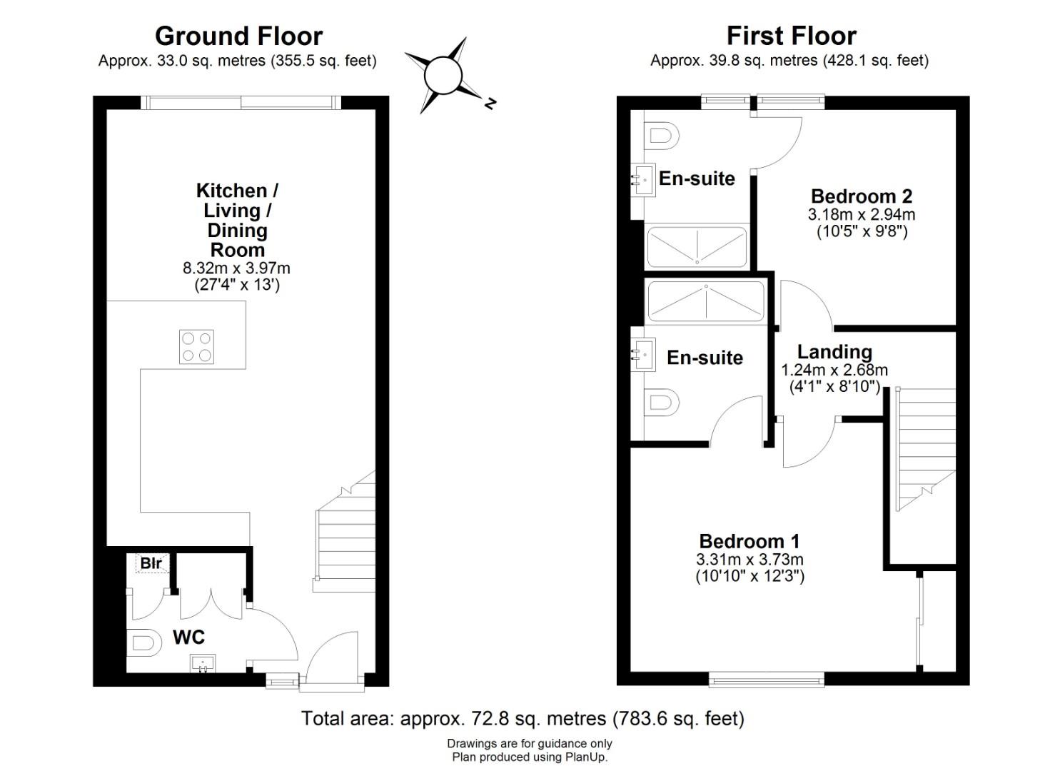 Accommodation is arranged over two light and spacious floors measuring 783 sqft in total.