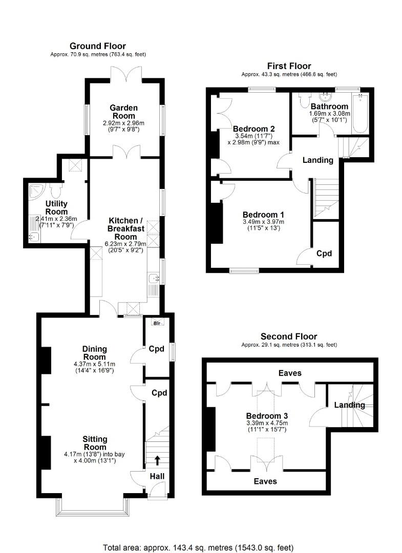 On the first floor landing, stairs rise to the second floor. There are two good sized double bedrooms and a family bathroom. A further bedroom is located on the second floor with exposed brick chimney breast and eaves storage.