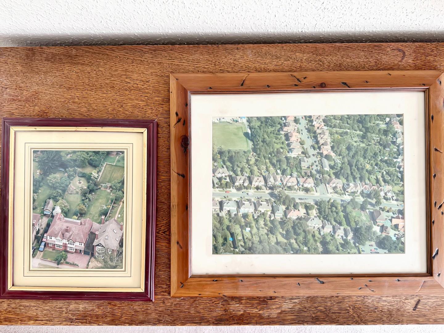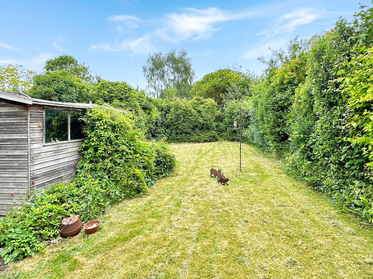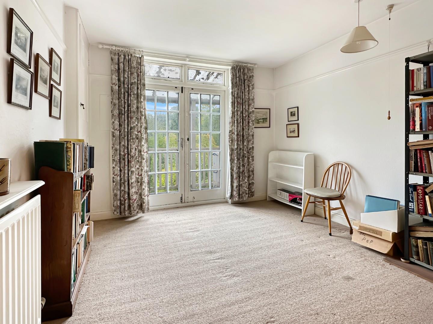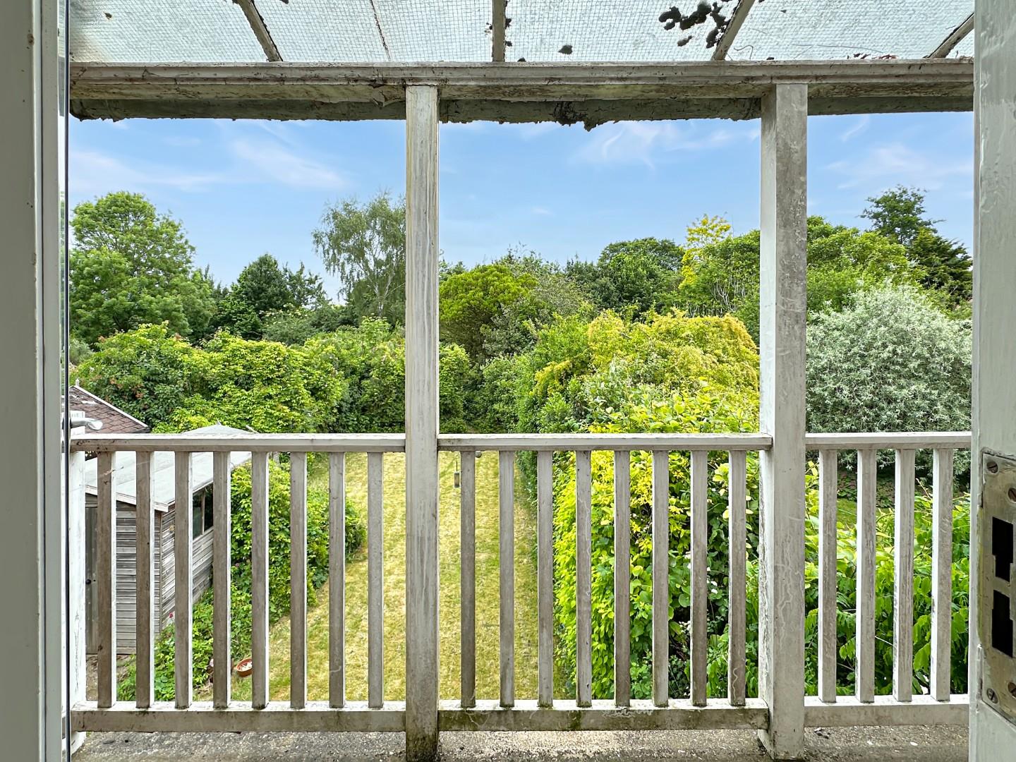 Upstairs, the landing area leads to a bathroom suite and four bedrooms. The principal bedroom opens to an enclosed balcony, which provides far-reaching views across mature gardens and beyond.