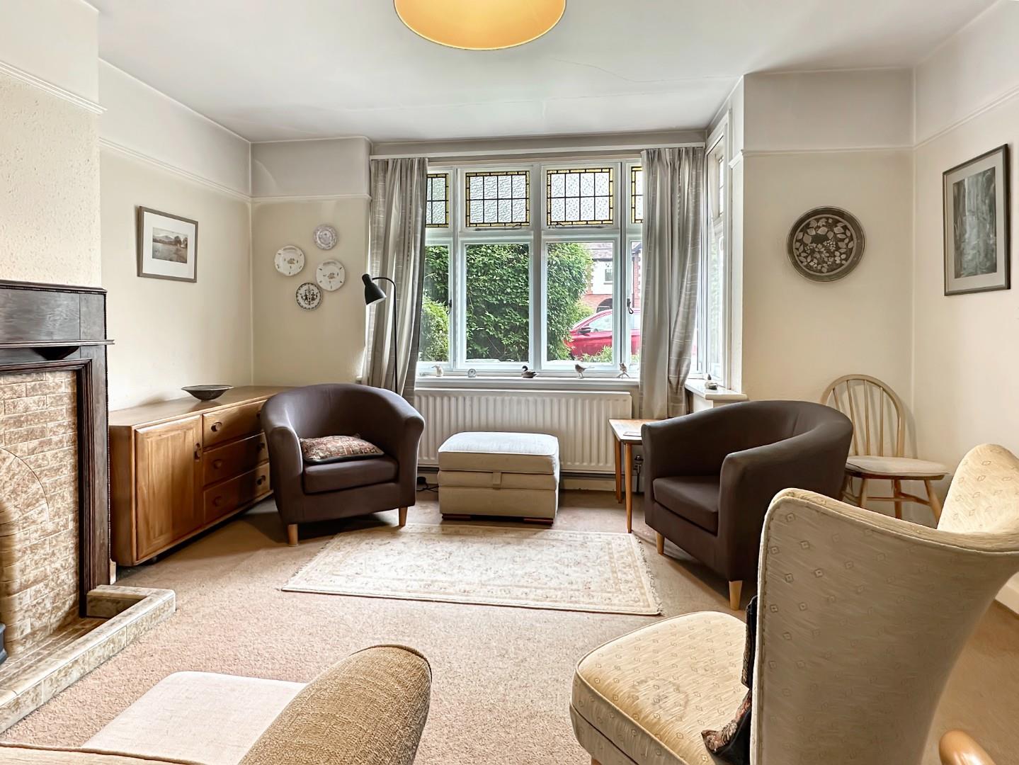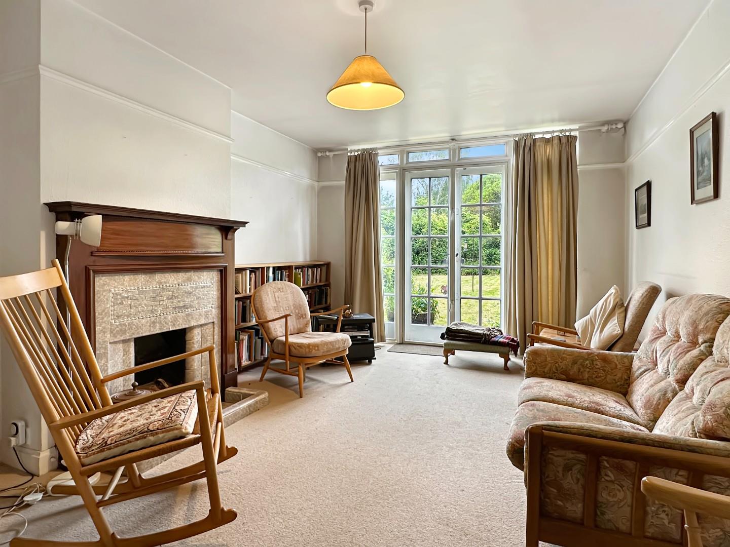 The accommodation comprises a reception hall with a staircase rising to the first-floor level and a WC; a living room with bay window and open fireplace; a rear sitting/dining room with an open fireplace and glazed French doors opening to the garden; and a well-equipped kitchen.